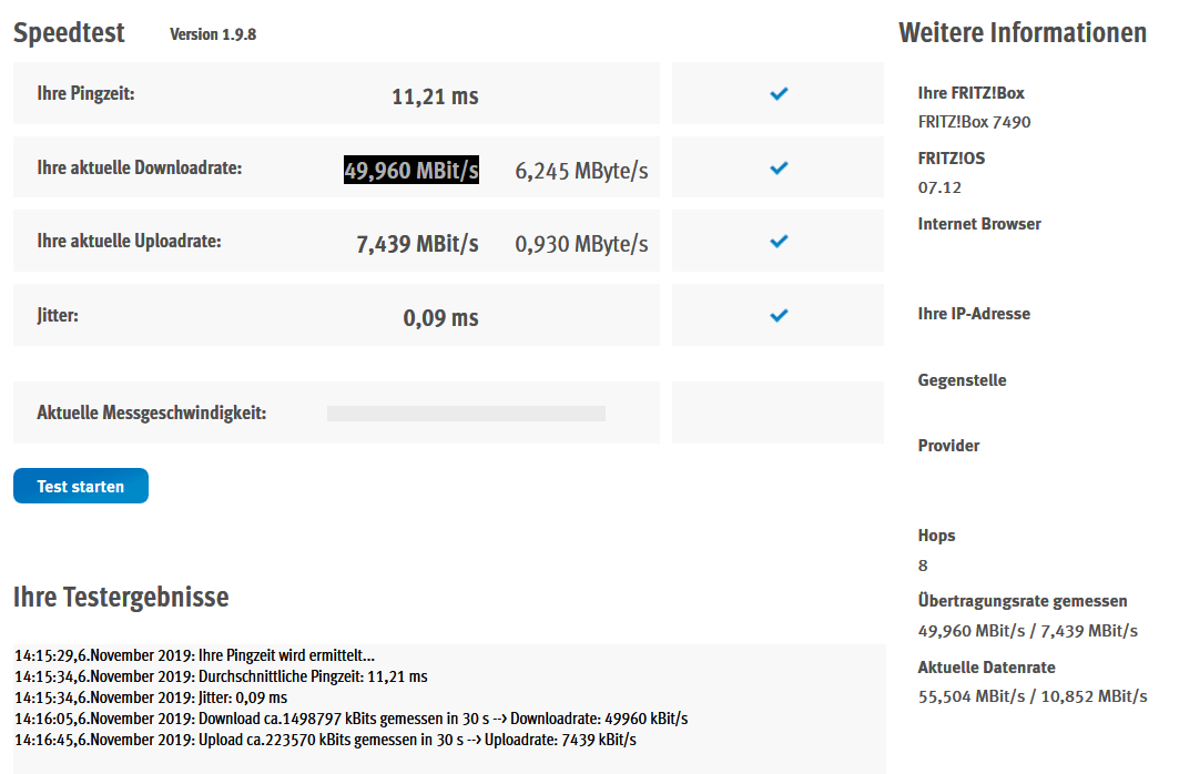 Als es erstmals auftrat, habe ich einen SpeedTest gemacht, der zeigte die üblichen