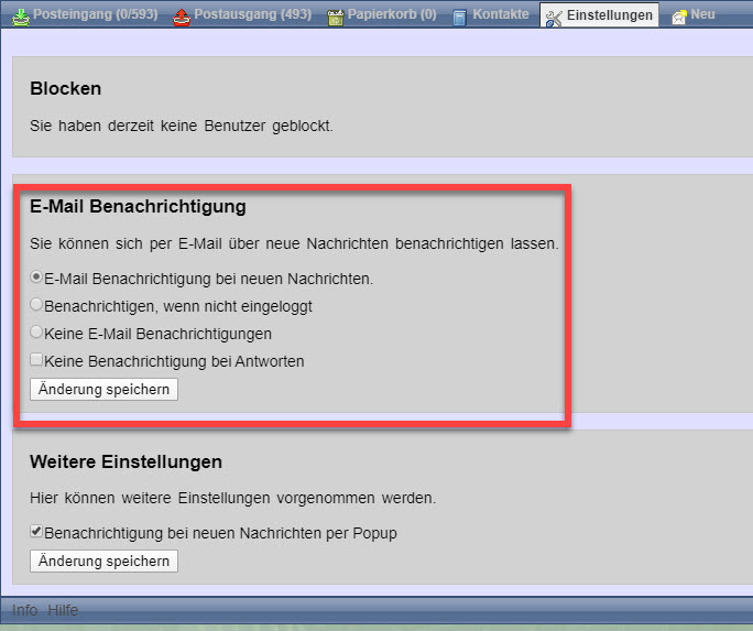 Der zweite Punkt, die Benachrichtigungen bei eingehenden Nachrichten, sollte zwar nach Aussage der Entwickler funktionieren, tut es aber in meinen Tests nicht. Man bekommt nach derzeitigem Stand nur eine Email-Notification, jedoch kein Popup oder so etwas auf der Site selbst.