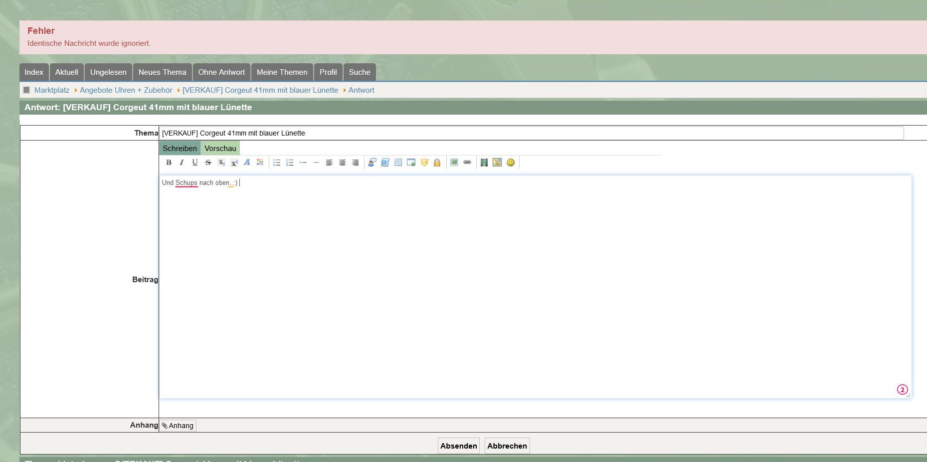 Gleiche Beiträge werden von der Software ignoriert ..?