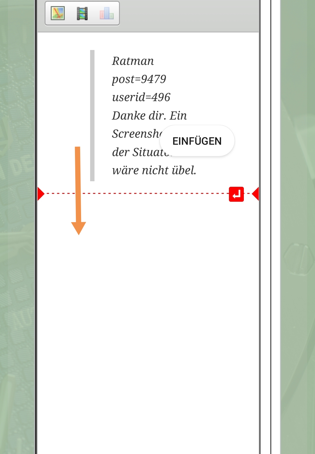 Hm, ist doch genauso wie auf'm PC. Einfach mal auf das rote Symbol klicken, das fügt einen Zeilenumbruch ein. Funzt bei mir am PC auf IE, Firefox und Chrome, auf dem iPhone 8 im Safari getestet
