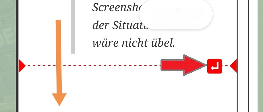 Man hat dann links einen Streifen und kommt nicht ohne Probleme aus dem Zitat heraus. Es erscheint eine Leiste mit einem Enter-Symbol, egal was, man bleibt im Zitat.