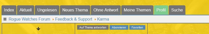"Karma" ist eine Art Bewertungssystem, mit dem ihr User belohnen oder bestrafen könnt. In der Profilbox eines jeden Users seht ihr sein Karma-Level (welches intial Null ist) und ihr könnt diesen User dann auf- oder abwerten, wenn er euch in der Vergangenheit besonders positiv oder negativ aufgefallen ist. In der eigenen Profilbox seht ihr nur euer eigenes Karma-Level. Selbst auf- oder abwerten könnt ihr euch aus naheliegenden Gründen nicht, daher fehlen in eurer eigenen Profilbox die Plus- und Minusbuttons.