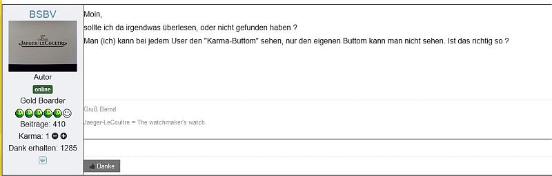 Man (ich) kann bei jedem User den "Karma-Buttom" sehen, nur den eigenen Buttom kann man nicht sehen. Ist das richtig so ?