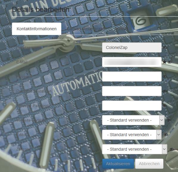 Oha, da hast du allerdings recht. Der Dialog, in dem ihr euer Profil bearbeiten könnt, hat keinen eigenen Hintergrund, sondern verwendet den Hintergrund der Site selbst. Den hatte ich aber leichtsinnigerweise auf 70 % Transparenz gestellt, daher konnte man die Beschriftungen der einzelnen Felder gegen das Hintergrundbild kaum noch sehen. Ich hab nun die Transparenz auf 10% runtergesetzt, jetzt sieht man die Beschriftungen wieder deutlcher. Ich lasse mir da aber noch was einfallen, das Design ist noch nicht 100%ig so, wie ich es gerne hätte.