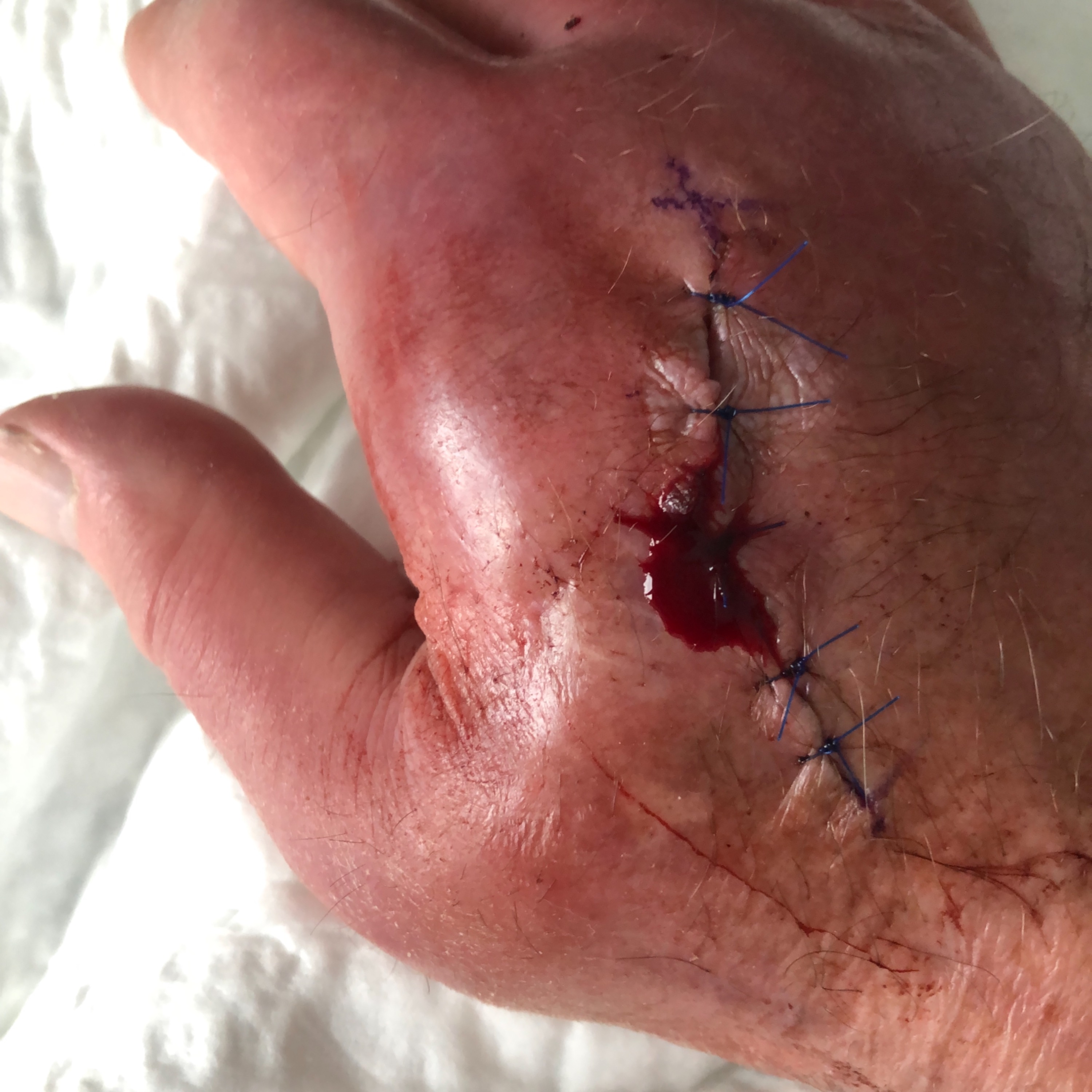 Wichtig ist, die Hand bleibt erhalten, und mit etwas Hand-Gym wird die wieder voll einsetzbar sein. Dauert aber ein bißchen....