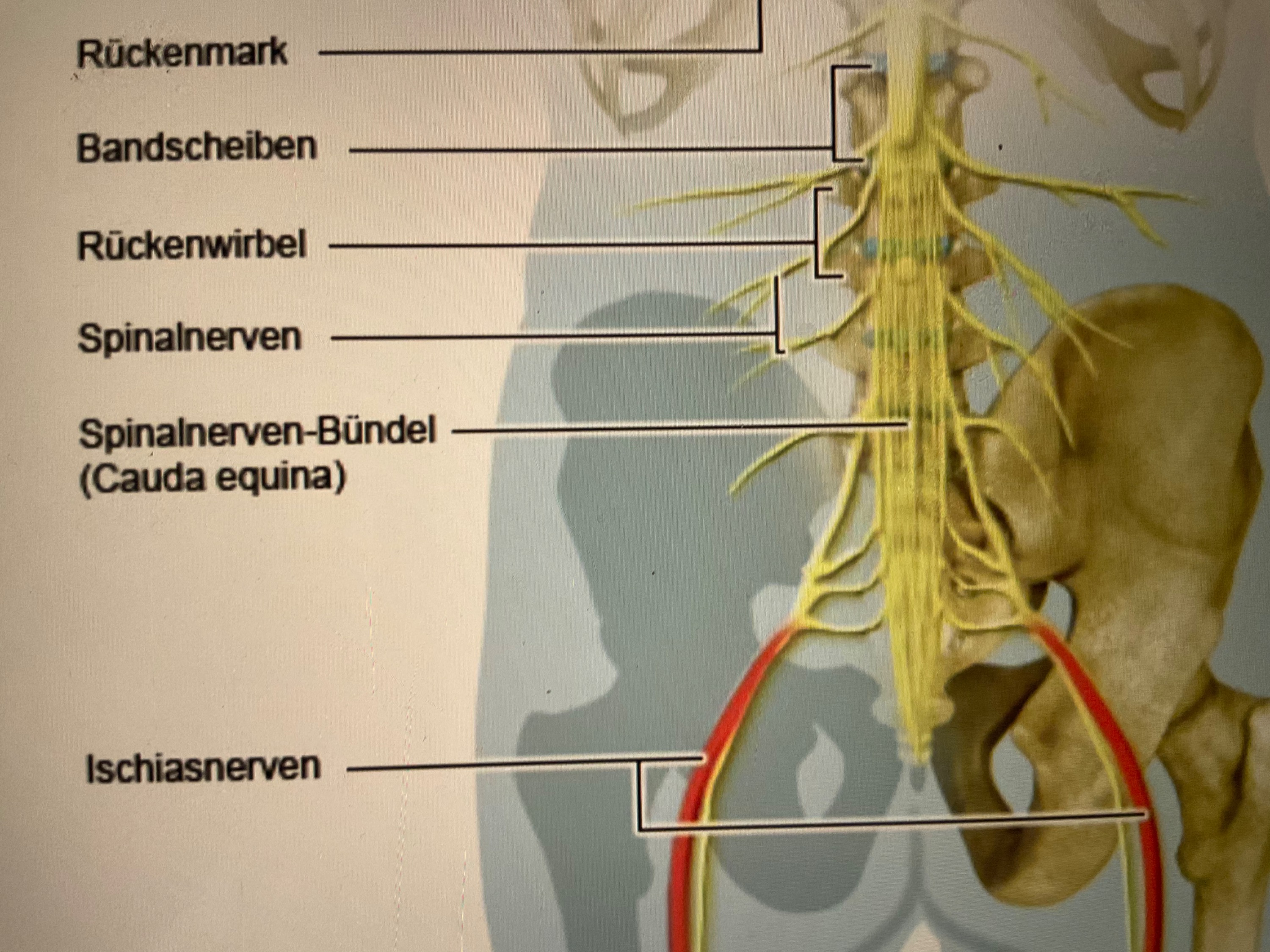 Und hier der Verlauf der Spial-und Ischiasnerven