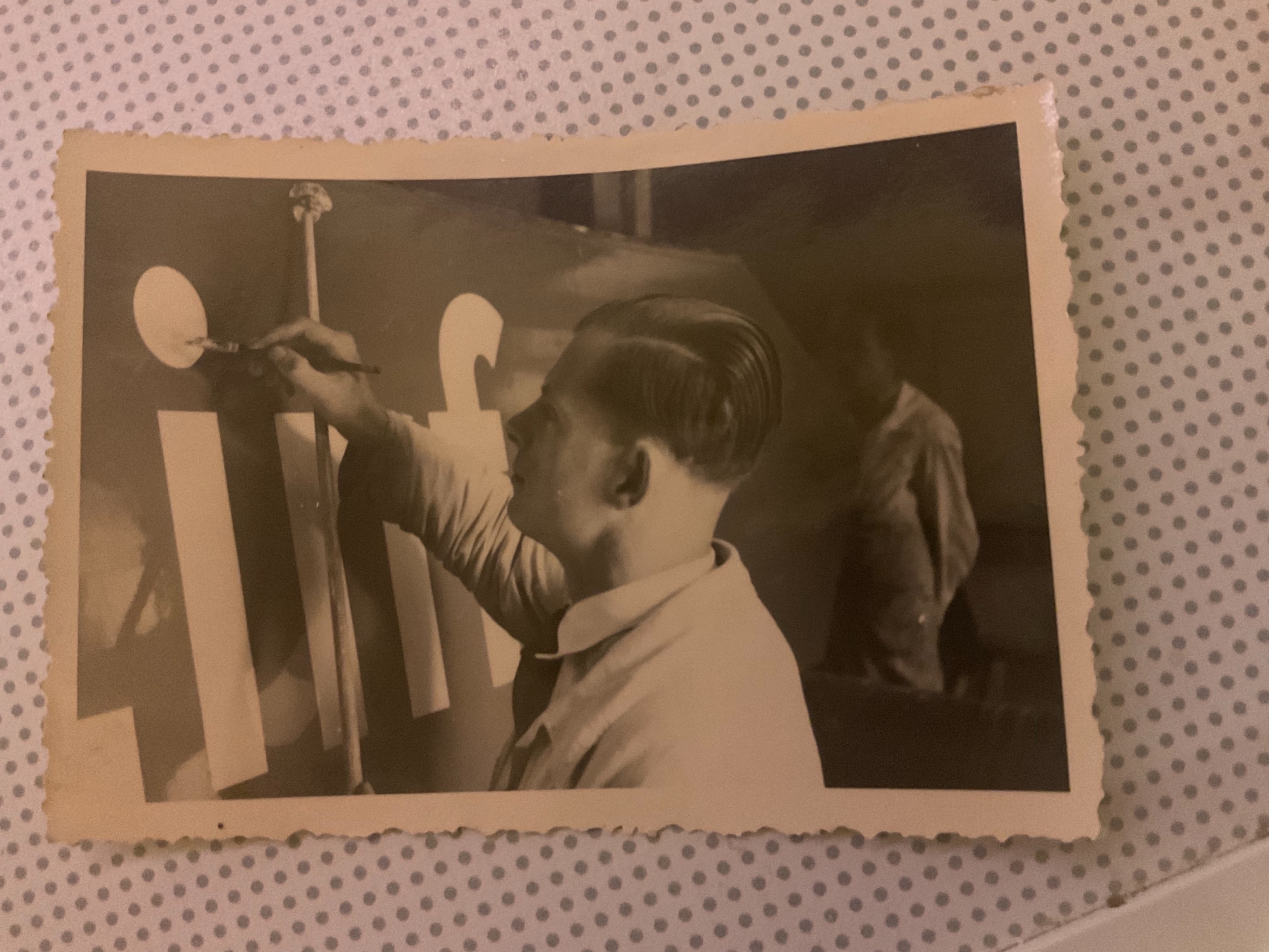 16 Feb. 2022 06:37 - 16 Feb. 2022 06:44Ich zeige hier zwei Bilder,einmal meinen Vater bei der Ausübung seines Berufes, (es dürfte sich um ein Autobahnschild „Einfahrt“ handeln) er war Schriftenmaler, einen Beruf, den es heutzutage bestimmt nicht mehr gibt!