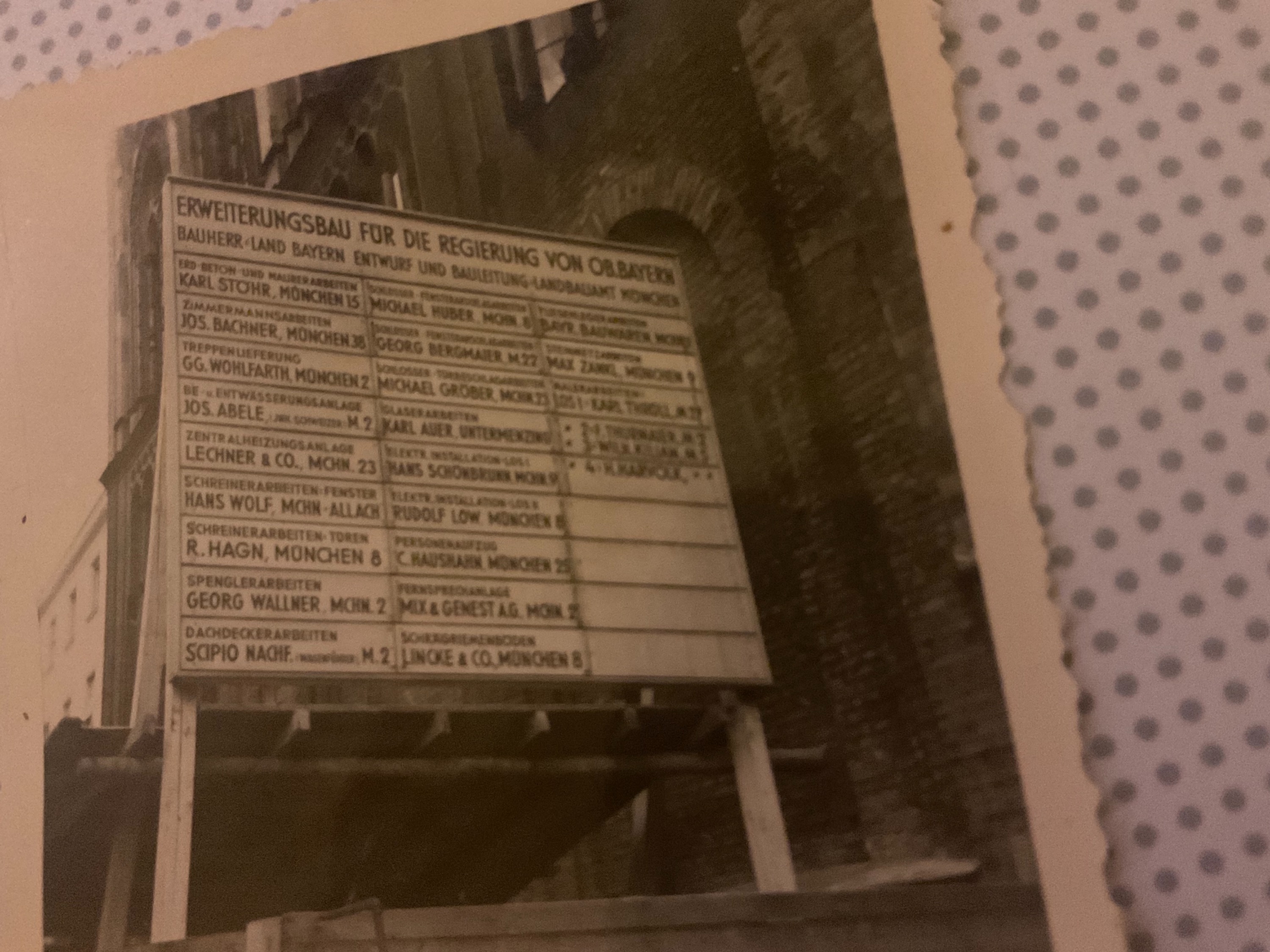 Das andere zeigt die am Bau beteiligten Firmen, (einige gibt es heute noch)ich nehme an, dass es von ihm gefertigt wurde, fragen kann ich ihn ja schon sehr lange nicht mehr, da er ja vom „Feld der Ehre“ nicht mehr zurück kehrte!
