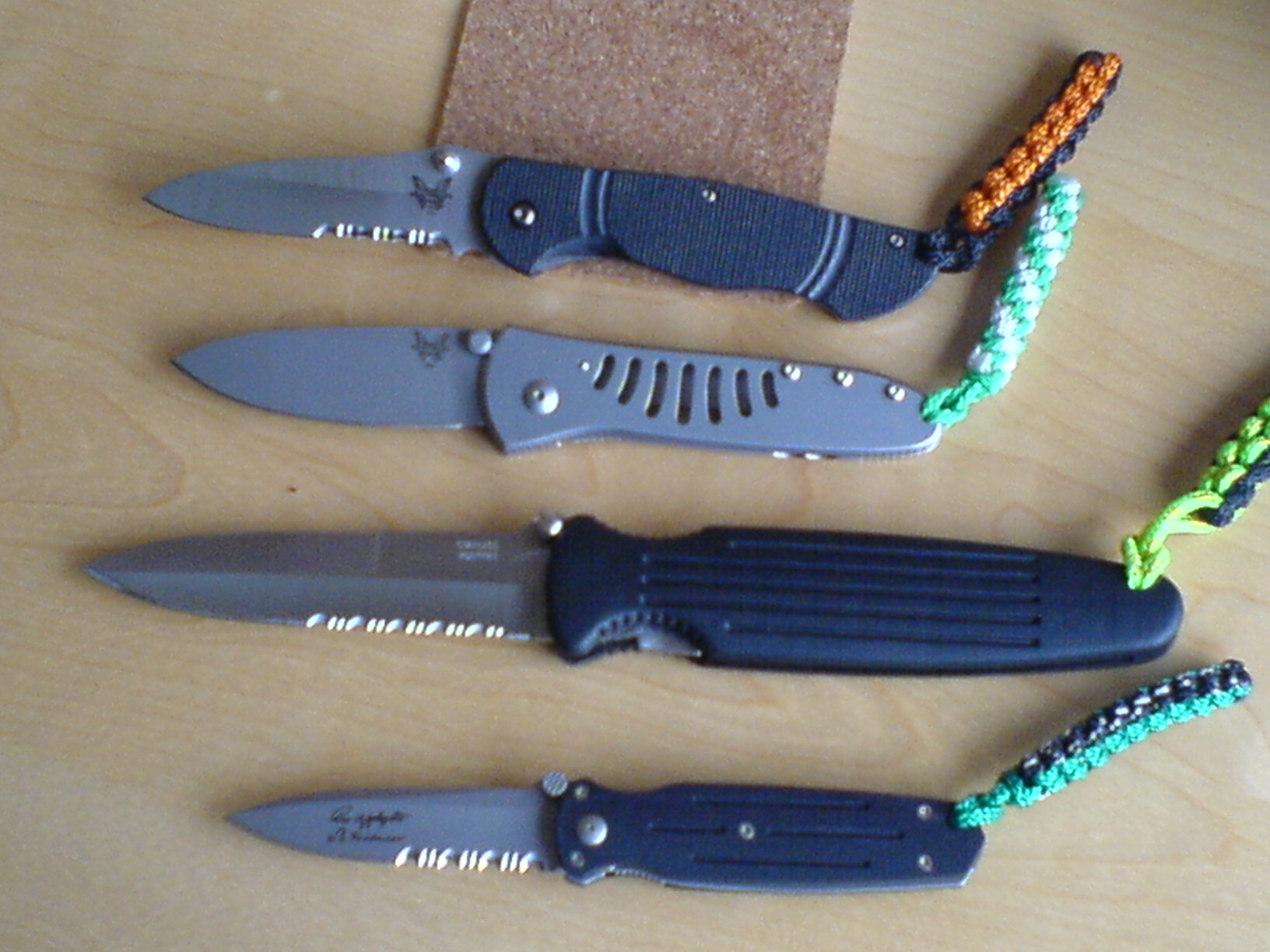 Hübsche Dinger, aber bis auf das letzte nicht wirklich mein Geschmack. Da kommt bei mir der Handwerker durch, ich mag eher Messer mit viel Stahl und Holz. Kunststoff kann ich an dieser Stelle nicht viel abgewinnen, obwohl es wahrscheinlich pflegeleichter ist.