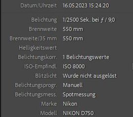 Manuelle Belichtung - Iso 8000 - Verschlußzeit 1/2500sek - bei Blende 9