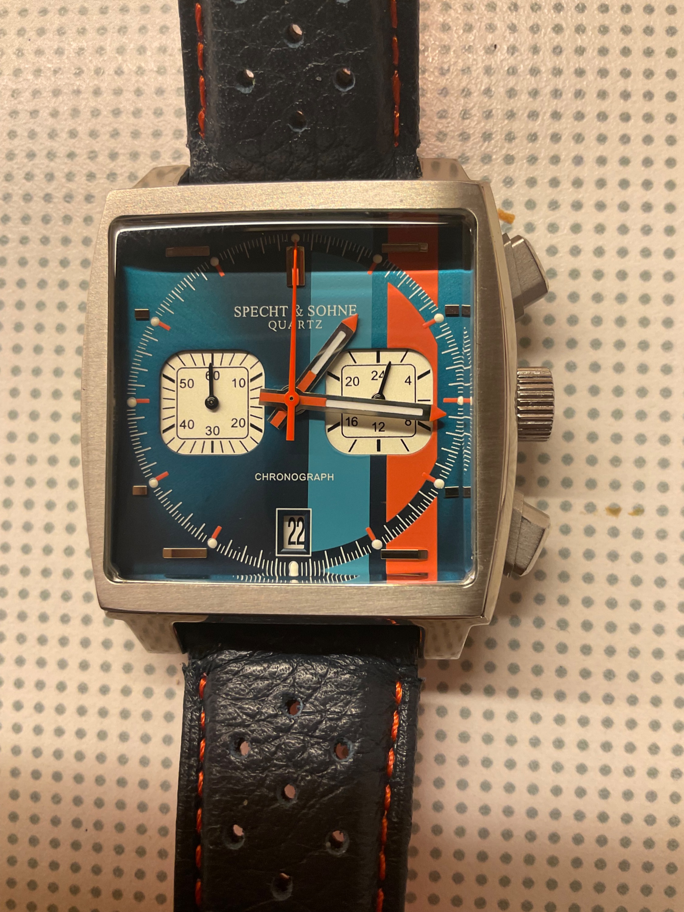 12 Feb. 2024 02:07 - 12 Feb. 2024 02:11Unter der der Easy Rider Chronograph unter den Namen Leonidas offeriert wurde. Heuer wollte sich zu seinen Stiftankerprodukt nicht recht bekennen!