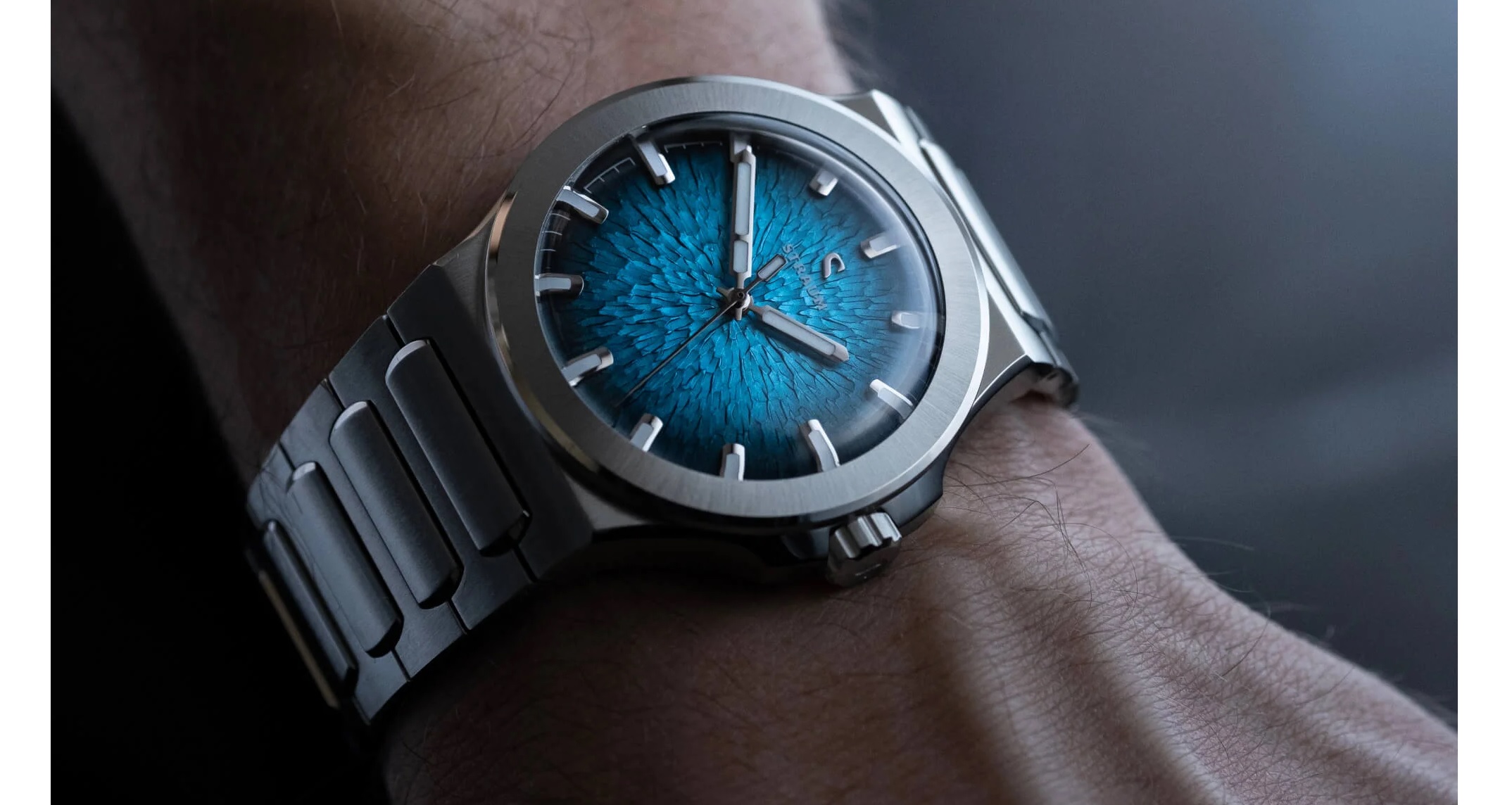 07 März 2024 13:42 - 07 März 2024 15:12Das heisst, es wird immer ein unerfüllter Wunsch von mir bleiben, denn mit einem Preis von 1600 Euro ist sie mir zu teuer. Es gibt mehrere Farben, die blaue gefällt mir am besten, aber grün wäre auch cool. Ich finde das ganze Design perfekt. Natürlich fällt sie vor allem durch die spektakuläre Zifferblatt-Skulptur auf, aber auch der Rest ist prima: Alle Oberflächen sind matt durch einen Schliff, da gibt es keine glänzenden Oberflächen, es gibt kein Datum, was ich gut finde. Die Formen sind schlicht, ohne Schnickschnack, ein paar Genta-Gene sind enthalten: das Band ist integriert, sie hat die gleiche "Schraubenkopfkrone" und es gibt den typischen Genta-Knick zu den Bandanstössen hin. Mann, ist die schön - aber halt leider, leider, der Preis...