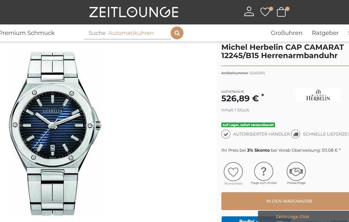 08 März 2024 17:11 - 08 März 2024 17:11www.zeitlounge.com/de/michel-herbelin-ca...armbanduhr/a-120635/