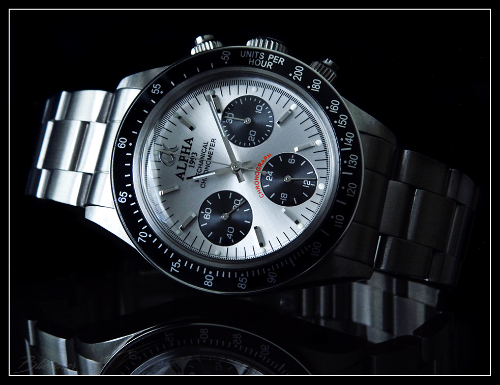 22 Nov. 2018 21:23 - 23 Nov. 2018 18:16Du hast vermutlich recht. Ich habe jetzt auch nach längerem Suchen keine Uhr im neueren Daytona-Look - also mit umrandeten Totis - gefunden, die ein Automatikwerk mit zentraler Stoppsekunde hat und KEIN Fake ist. Und da ich mich aktuell nicht zwischen der Parnis, der Invicta Speedway (mit altem Werk, zentrale Stoppsekunde) und einer Alpha Panda entscheiden kann, habe ich mich anders orientiert. Dazu weiter untenColonelZap schrieb: Echter Chrono als Automatik wirst Du ziemlich sicher nicht finden, kann ich mir zumindest nicht vorstellen, die kosten viel Geld! Wenn, dann Handaufzug und da fällt mir spontan wirklich nur die Alpha ein. Aber ich kenne natürlich nicht alle Daytona Hommages, als ich "damals" gesucht habe, habe ich keine Bessere als die Alpha finden können.