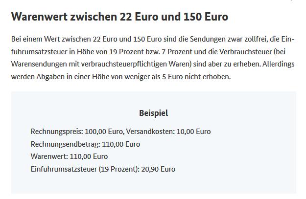 08 Feb. 2019 07:13 - 08 Feb. 2019 07:24Ratman schrieb: aber die 19% Einfuhrumsatzsteuer berechnen sich nach dem Kaufpreis ohne Porto!
