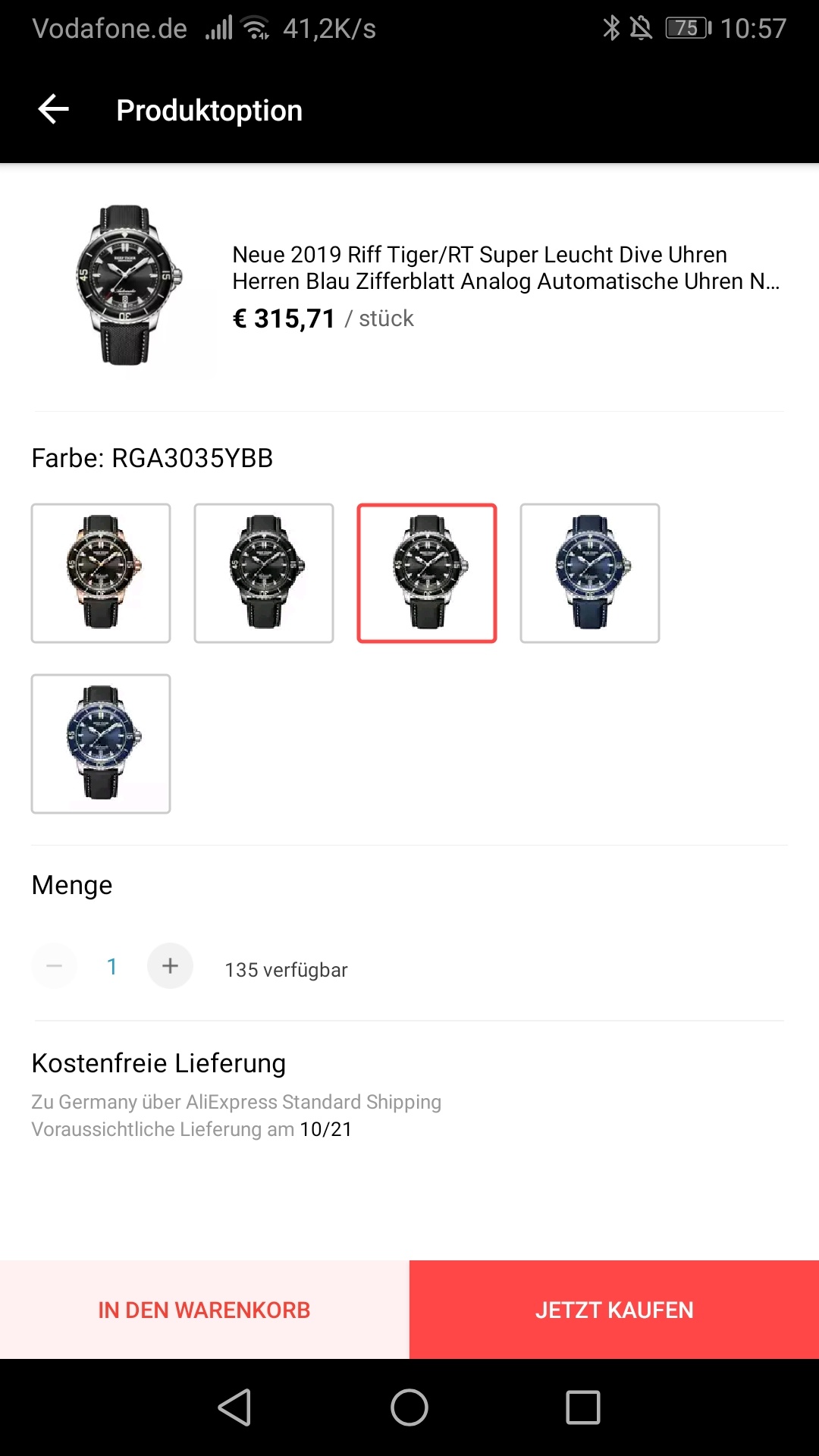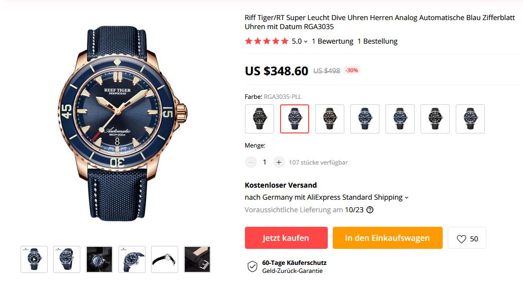 Und heute Abend um 17 Uhr startet dann diese Uhr für 280$: