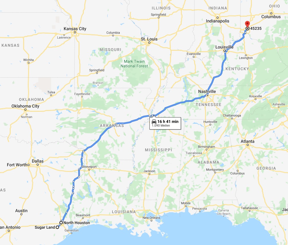 Meine Invicta hat bereits die ersten gut 1.000 km hinter sich. Vom Ursprungsort Sugar Land, Texas und einem Zwischenstop in Houston ist der Ticket nun in Cincinnati angekommen.