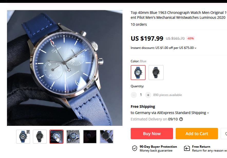 29 Juli 2020 13:32Ich hab mich jetzt mal getraut und die mit dem orangefarbenen ZB bestellt. Inklusive Lieferung und Einfuhrabgaben rund 120,- EUR. Ich habe noch ein wenig Bedenken wegen der Größe von rund 46 mm, aber ich hoffe, dass sie etwas kleiner ausfällt, da die Lünette kleiner als das Case ist. Wenn sie mir nicht gefällt, muss sie halt wieder gehen.