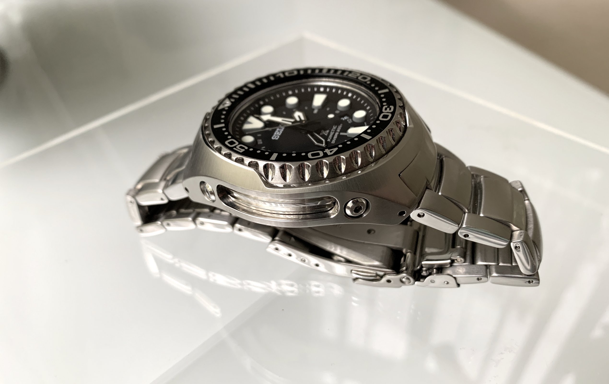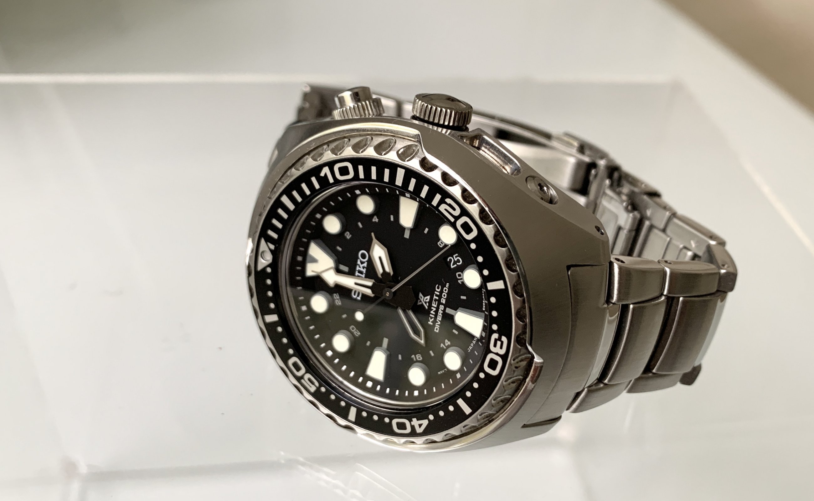 Vor Kurzem hab ich eine schöne Uhr im Ufo-MP gesehen, die mich seitdem nicht mehr losläßt: SEIKO PROSPEX KINETIC GMT SUN019P1