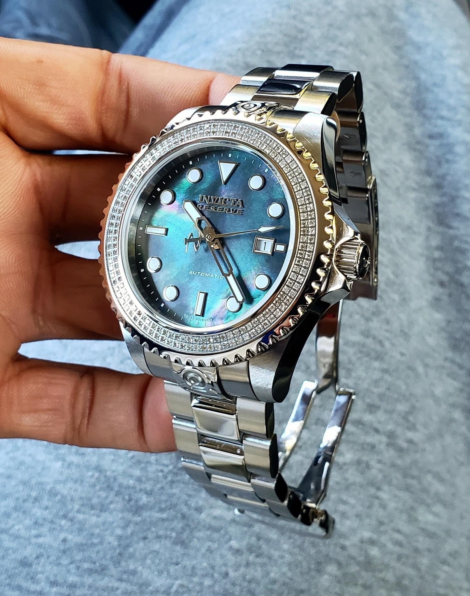 Dürfte aber ne Kleinigkeit kosten, die Diamanten auf der Lünette sind laut Invicta echt und das Sellita SW200 dürfte auch ein bisschen was kosten. Okay, $9.995 (UVP) ist der übliche Invicta-Mondpreis, aber ganz billig dürfte sie trotzdem nicht zu haben sein.