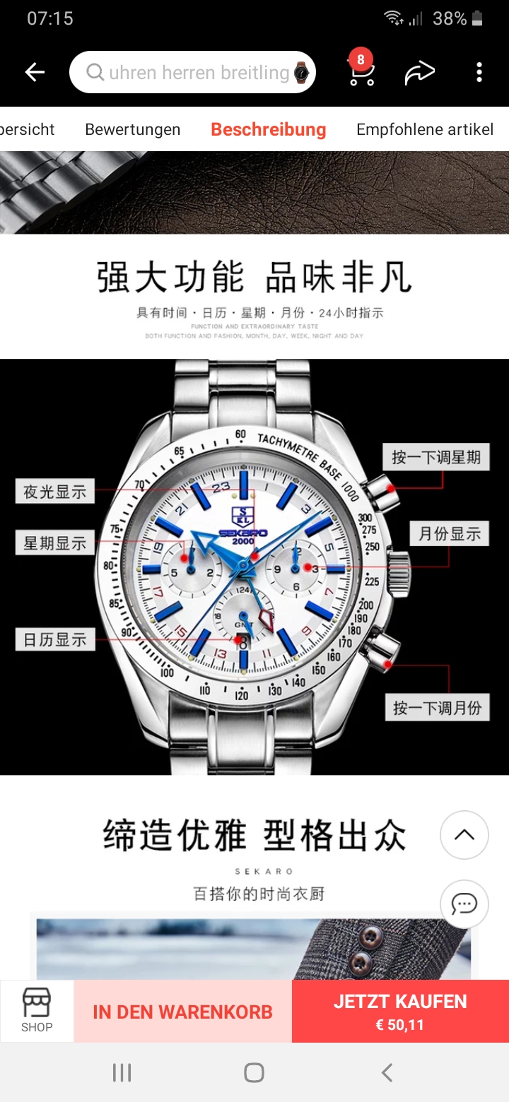 Komischerweise bekomme ich über die App einen nochmals deutlich günstigeren Preis angezeigt, aber nur, wenn ich die direkt auf den Artikel geklickt habe, dann steht unten neben: "In den Warenkorb legen": "Für 174,xx Eur kaufen", diesen Preis bekomme ich im Warenkorb selbst aber nicht angezeigt, wenn ich die Uhr anwähle, da sind über 30,- Euro Unterschied! Seltsam, oder?