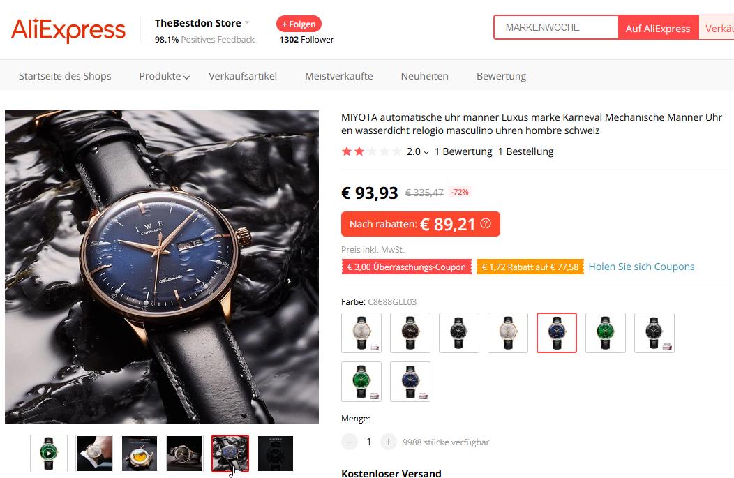 Aber VIEL zu teuer für ne olle Miyota Klapperuhr