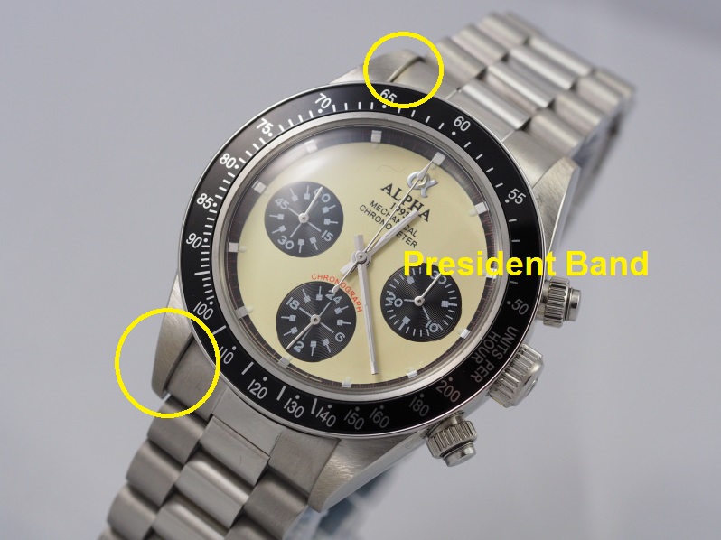 "Newman"-Alpha mit blanker Lünette, President-Band -> www.alpha-1993.com/en/Chronograph/Stainl...ph-watch-shop-7.html