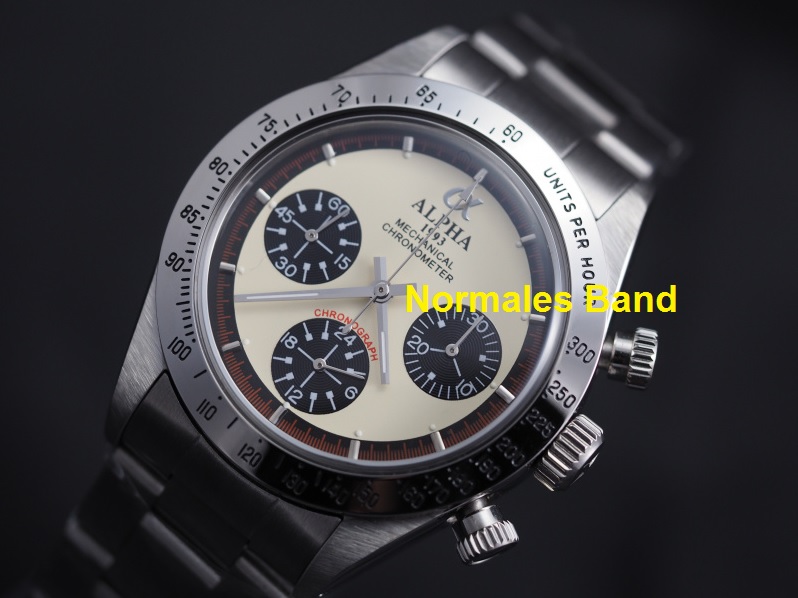 "Newman"-Alpha mit blanker Lünette, normales Band -> www.alpha-1993.com/en/Chronograph/Stainl...ph-watch-shop-4.html