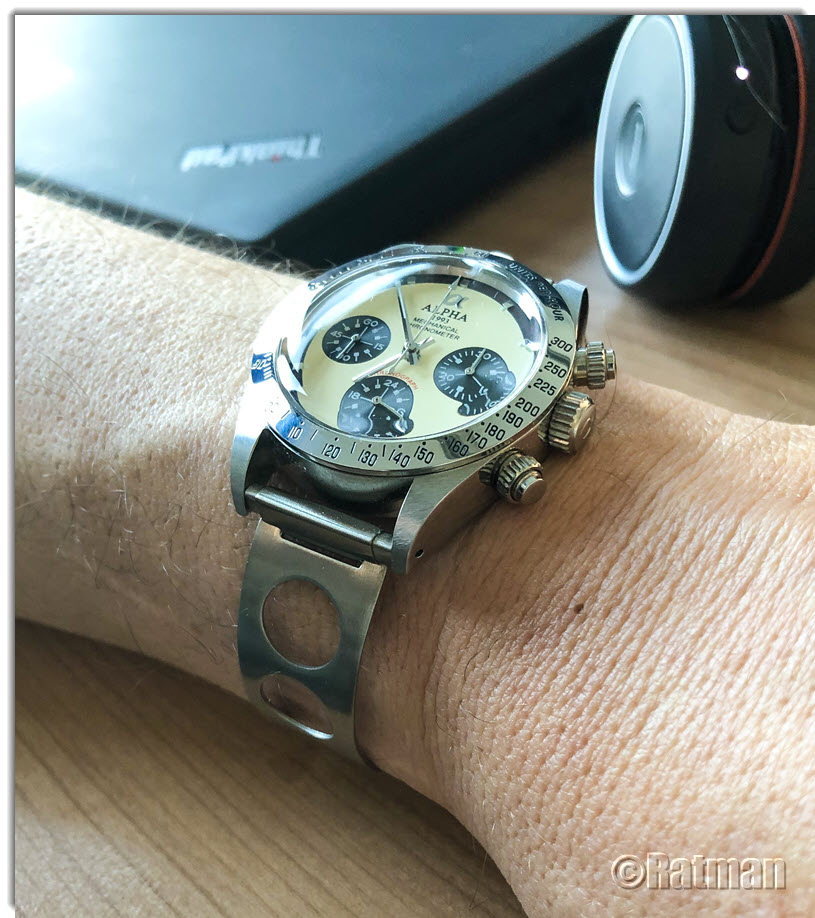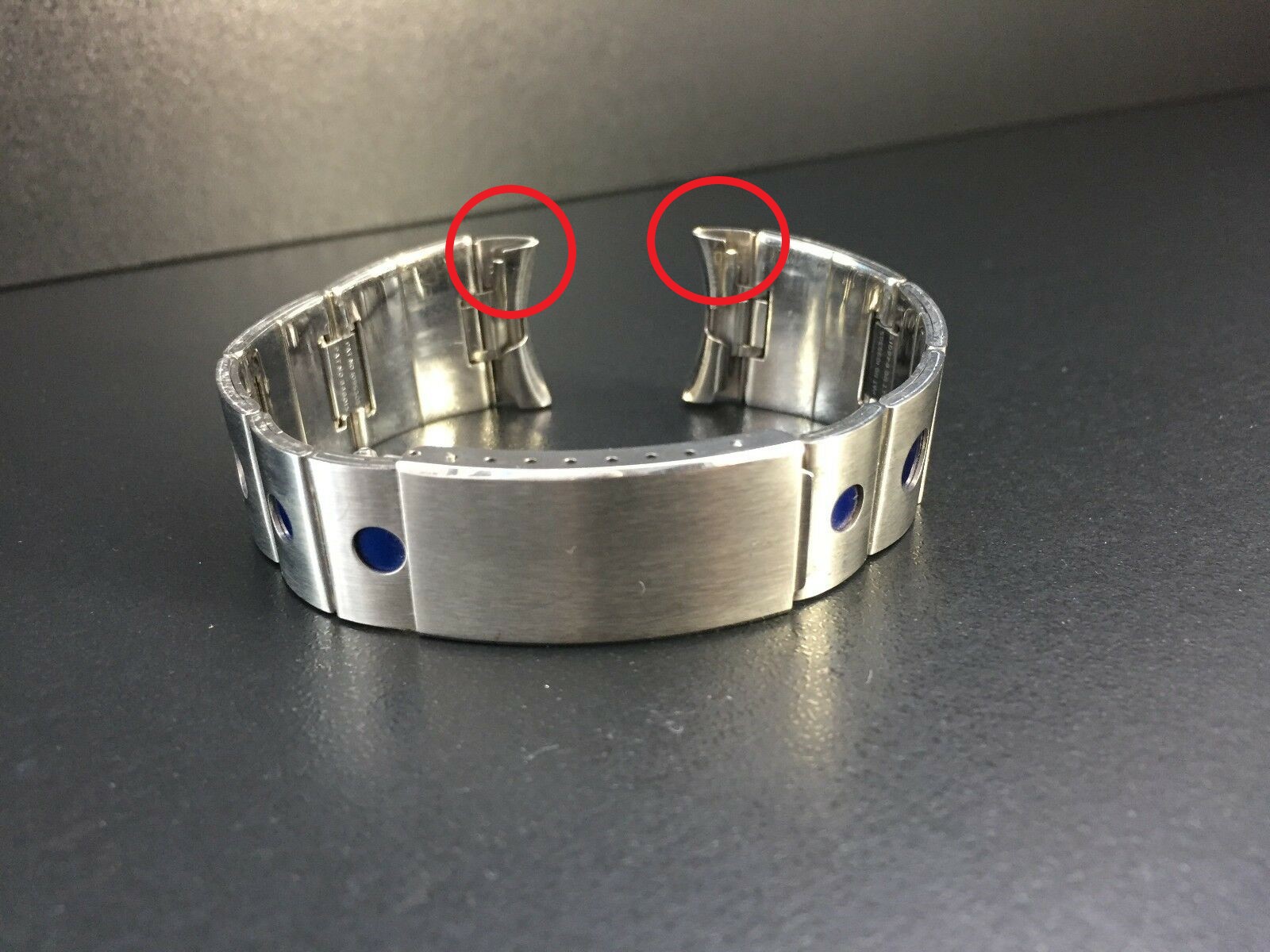 Sodele, die Bänder sind letzte Woche eingetroffen. Eine jeweils passende Uhr zum Band zu finden stellt sich aber als gar nicht mal so einfach heraus. Das Band mit den durchbrochenen Mittelgliedern ist leider etwas zu kurz. Ich müsste erstmal eine Uhr finden, die "lang" genug ist, damit das relativ kurze Band trotzdem reicht. Zu dem Band mit den blauen Punkten habe ich noch keine passende Uhr gefunden. Ich hatte schon mal an meine blaue Invicta Grand Diver gedacht, aber da passen die Endlinks überhaupt nicht.