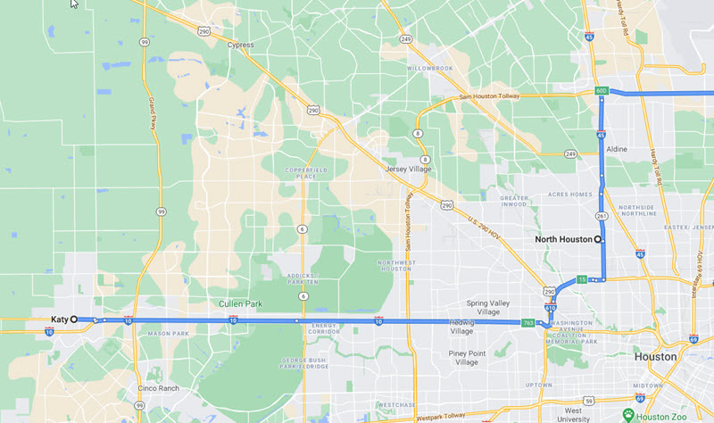 Die ersten zwei Tage ging es für meine silberne Invicta nur knapp 30 Meilen vorwärts, vom Vorort Katy in den Norden von Houston