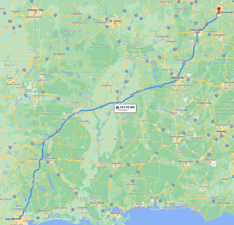 Doch dann hat sie nen größeren Hüpfer gemacht, von North Houston nach Cincinnati, Ohio.