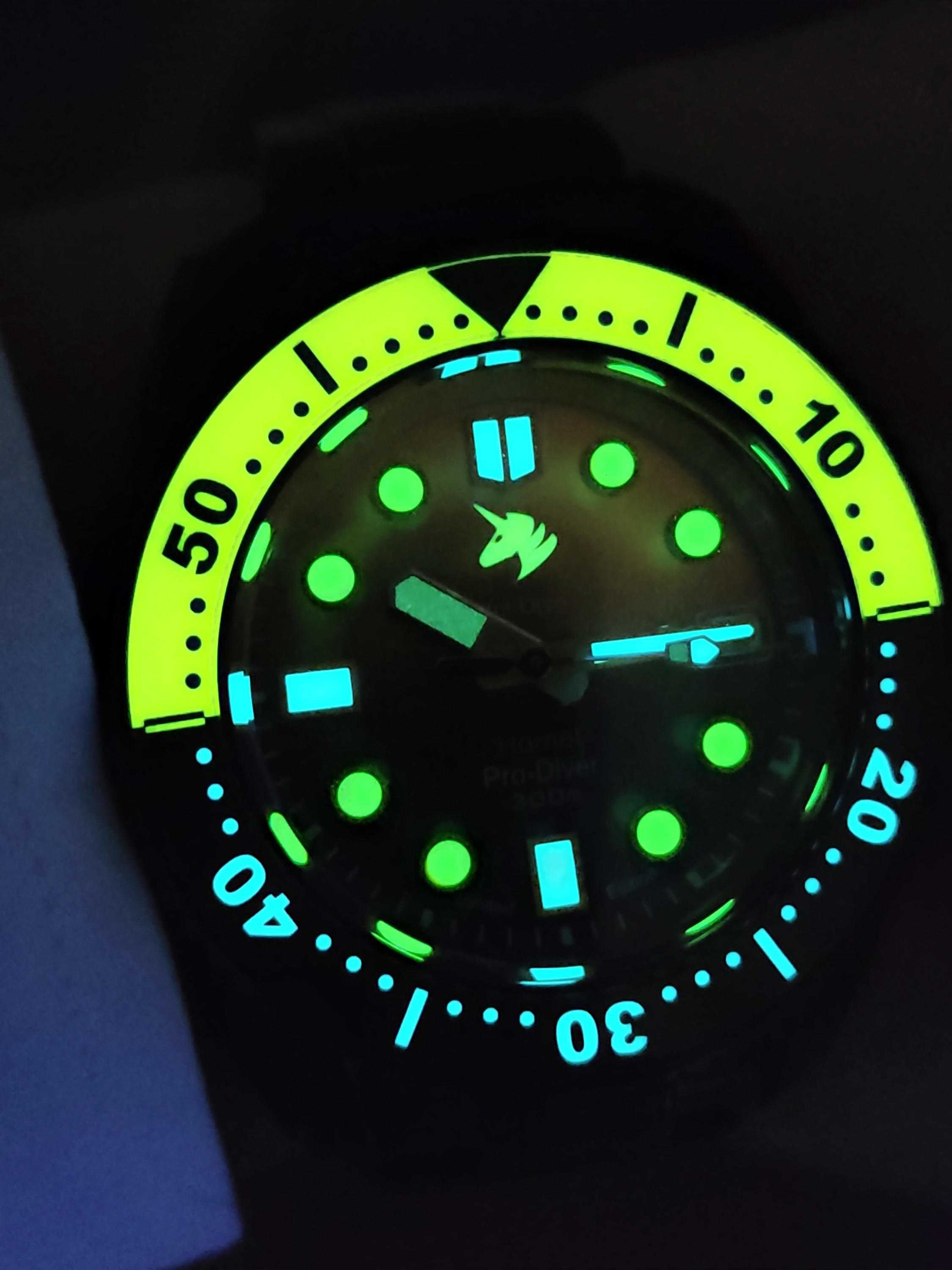 Ich hab in der Bucht eine schöne ARAGON DIvemaster II mit Full Lume Blatt geschossen. Ich dachte mir, bevor die USA jetzt im Chaos versinken, rette ich die Kleine und hole sie in die alte Welt