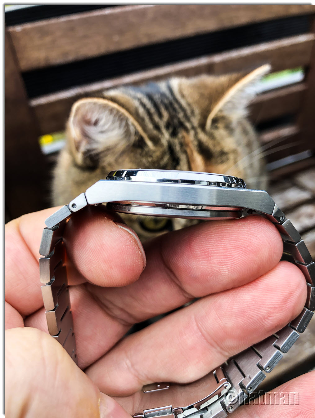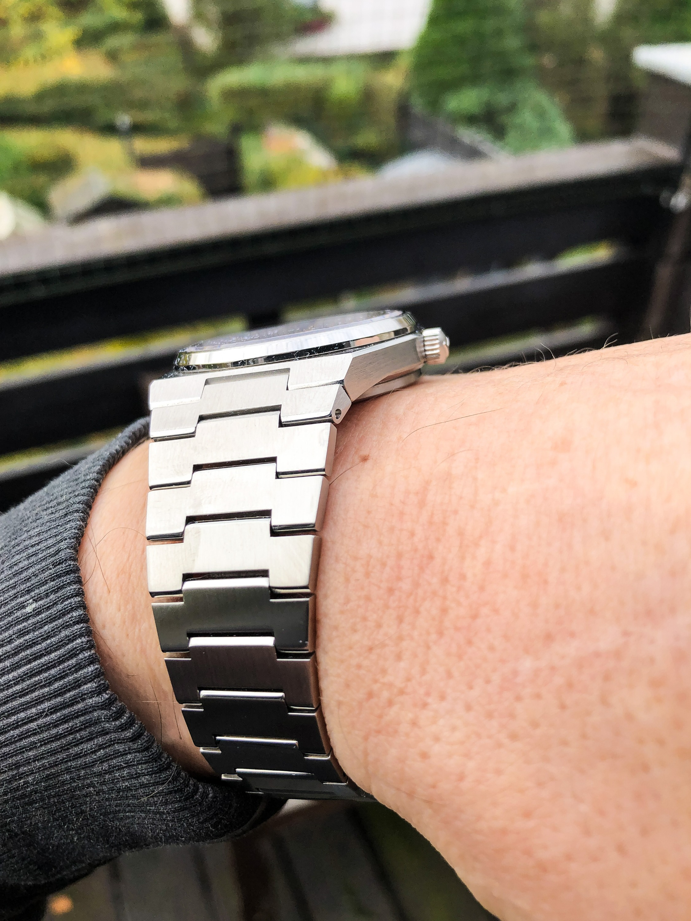 Sie ist haargenau so, wie ich sie mir vorgestellt habe. Trotz der kleinen Größe von 40mm wirkt sie sehr erwachsen. Das kantige Design erinnert an Genta und das integrierte Armband schmiegt sich sehr angenehm ans Handgelenk. Sehr schön die Roségoldfarbenen Indizes und Zeiger, ich hätte mi nur noch die entsprechende Lünette der Automatik-Version gewünscht. Aber man kann nicht alles haben. Drinnen gibt ein ETA F06.115 den Takt an. Tolles Ding, wird auf jeden Fall ein Keeper!