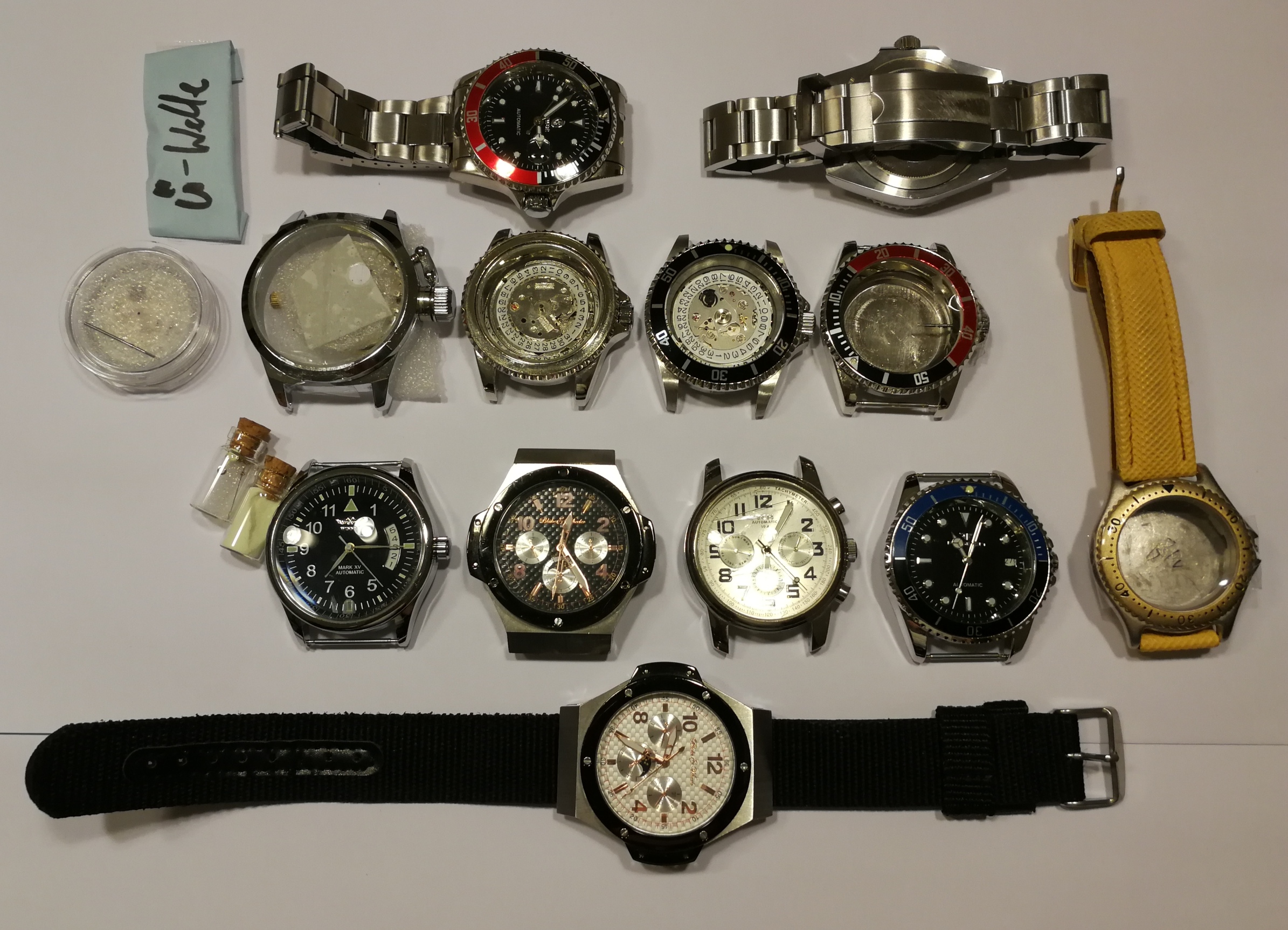 28 Jan. 2020 19:33 - 28 Jan. 2020 20:00Alles mögliche an Uhren, muss erstmal Inventur machen. Oben rechts vergessen für das Vorder-Foto umzudrehen, nochmal Reihe ich die nicht auf, habe ich erstmal wegsortiert und muss jetzt auf die Suche gehen, welches Werk wie und ob läuft, etc.