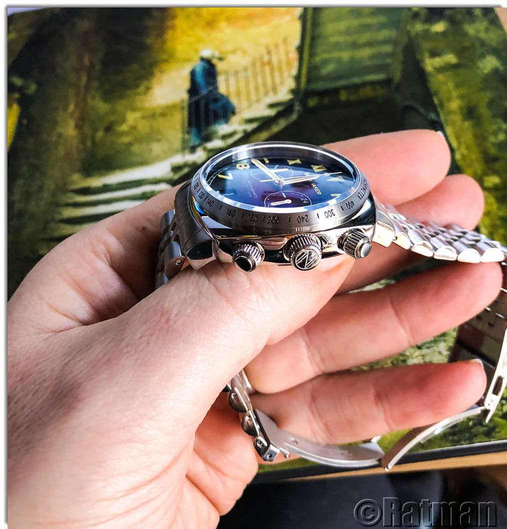 Aber es hat ja nun auch eine Weile gedauert. Je länger ich mich mit Uhren beschäftige, desto mehr wandelt sich mein Geschmack. Manches, was ich anfangs gar nicht mochte, wird nun so langsam doch interessant. California-Dials, "Damenuhren" mit Durchmessern von 40mm und weniger, selbst Farbverläufe verlieren ihren Schrecken.und: