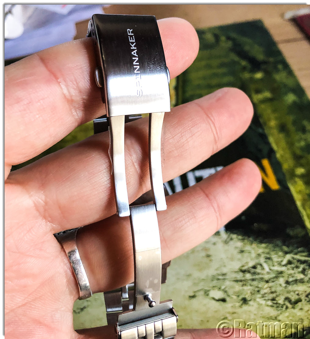 Der Versand ging ratzfatz. Gestern morgen bestellt, heute morgen gegen 9:30 Uhr klingelte bereits FedEx und übergab mir das Paket mit dem Ührchen. Iguanasell hatte wohl verfügt, dass die Übergabe nur an Personen über 18 erfolgen soll, daher musste ich nach langer Zeit mal wieder beim Empfang unterschreiben. Die Uhr erfüllt meine Erwartungen wirklich zu 101%. Obwohl ich ja bekanntermaßen nicht unbedingt ein Fan von Farbverläufen auf dem Zifferblatt bin, ist dieses dunkle Rot in Schwarz übergehend wirklich extrem schön. Auch sonst zeigt sich die von Spinnaker gewohnte Qualität: Zeiger sauber gesetzt, keine schiefen Indizes, geschmeidige Kronenverschraubung, massive Schließe und verschraubte Drücker.
