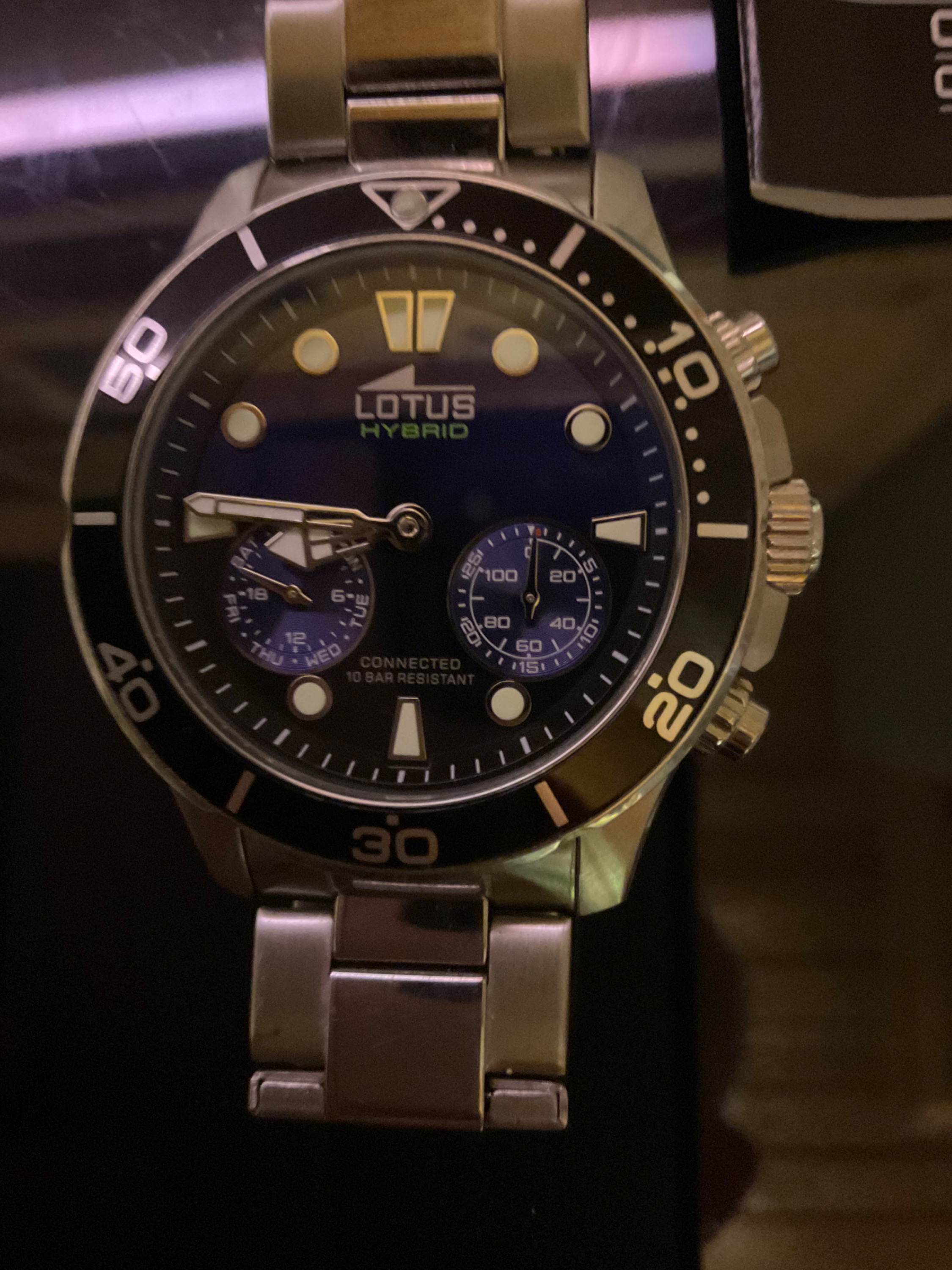 und ein paar Bilder auf die Schnelle gemacht. Spiegelungen, Flecken, ect. entschuldigen Ich habe ja noch die Apple Watch, zum Unterschied zur Lotus-Uhr halt ein „Plastikbomber“ und was echt nervt, die ständigen Ladezyklen!Aber das hab ich gewusst. Jetzt ruht sie schon seit längerer Zeit auf der Ladestationen!