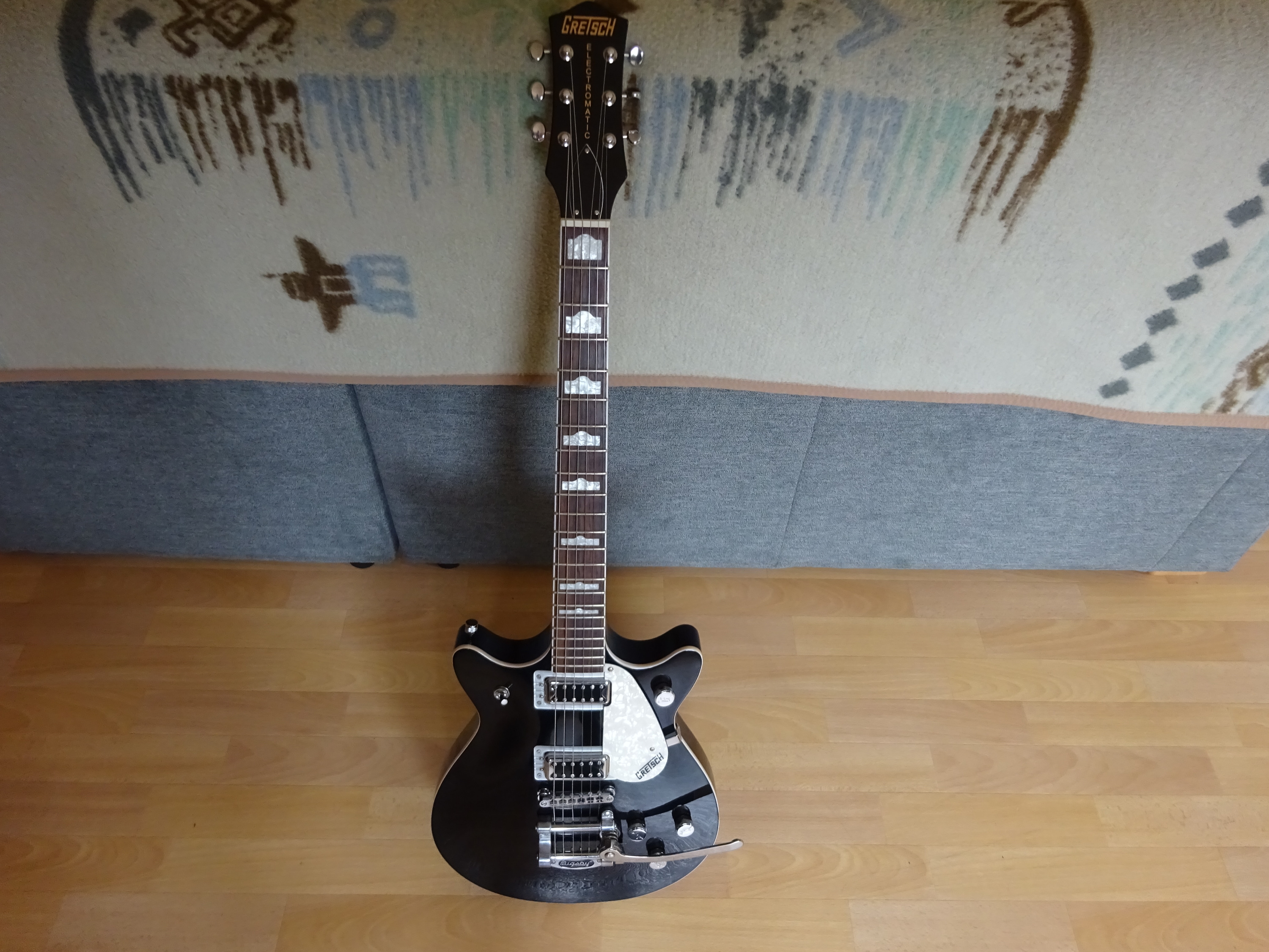 Eine Gibson, eine Ibanez, eine Framus, eine Yamaha, 2 Rickenbacker, 2 Dusenberg, 2 Hagström, und nun auch eine Gretsch.