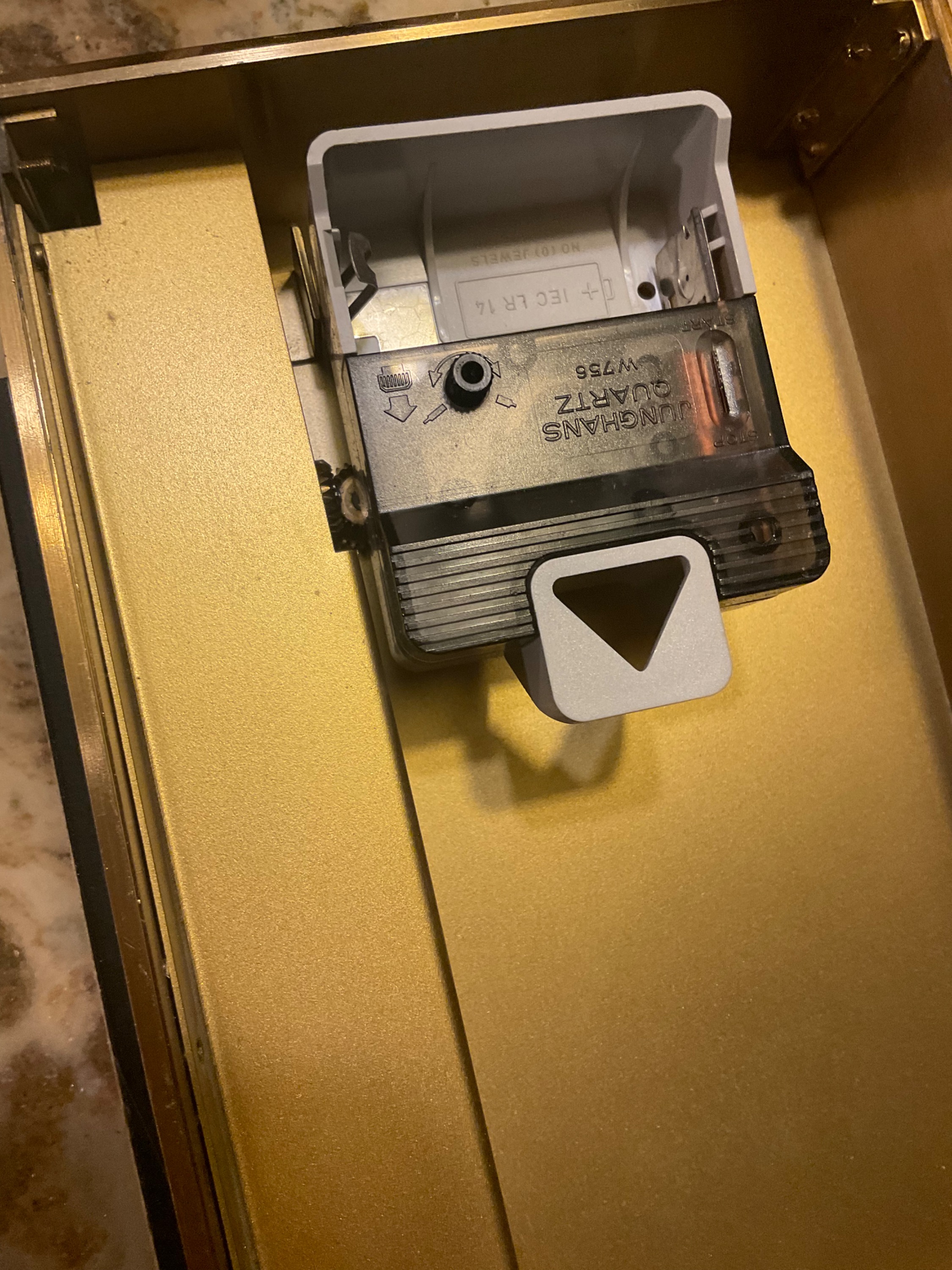 Dieses Zahnrad, oder Mitnehmerrolle wird wiederum durch ein Quarzwerk, das W 756, angetrieben! Und dieses, wird von Junghans schon lange nicht mehr produziert!