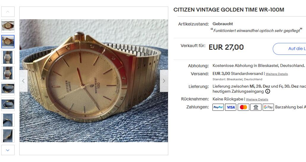 23 Dez. 2022 16:44 - 23 Dez. 2022 16:49Vintage (Januar 1983?), Genta Design, gold, flach, ein interessantes Zifferblatt, günstig,..., da konnte ich nicht widerstehen