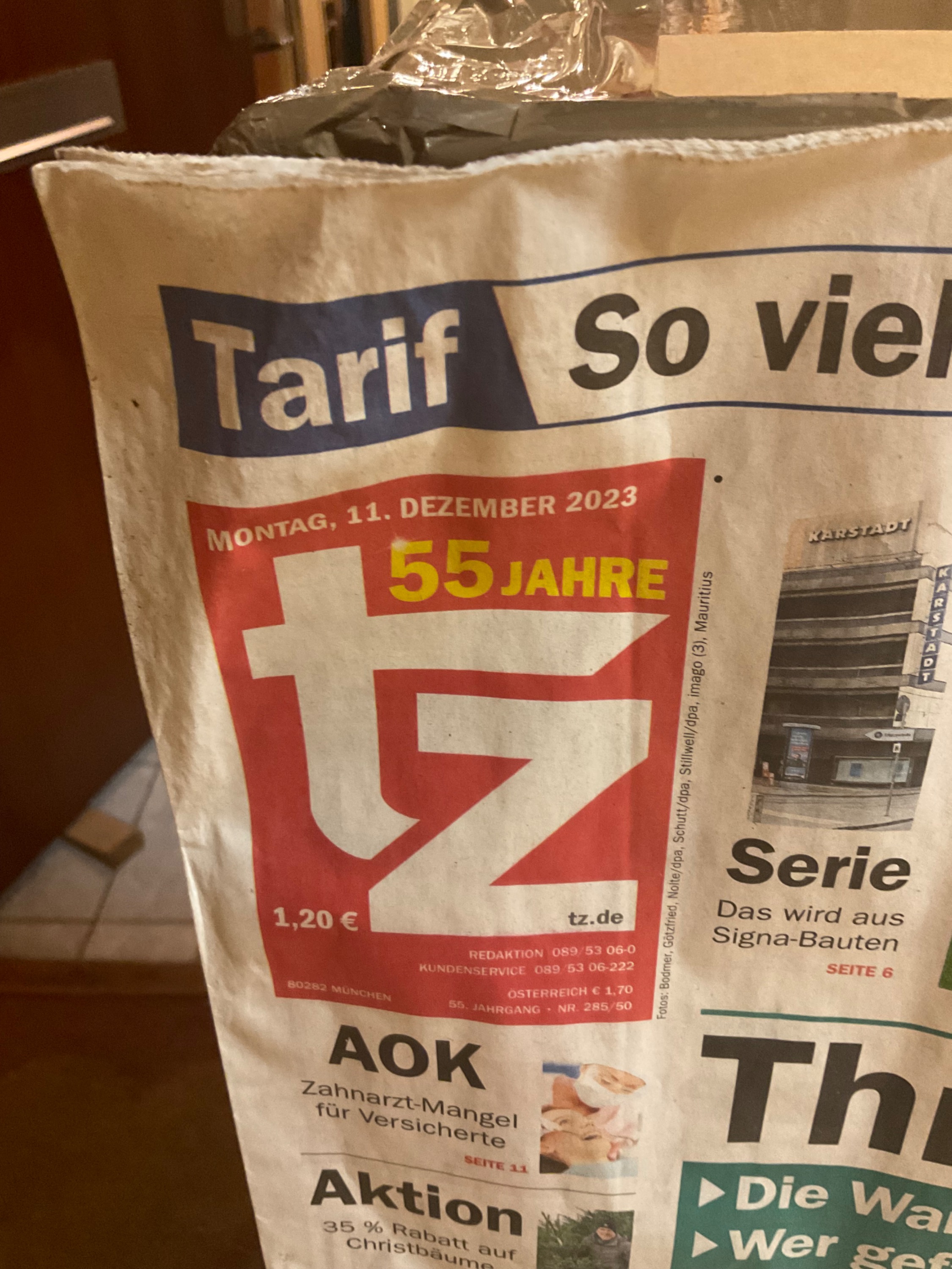 Im Anhang ist das Paket mit der heutigen Tageszeitung zu sehen. Es wurde mir mit ca. einer Woche Verspätung heute zugestellt.