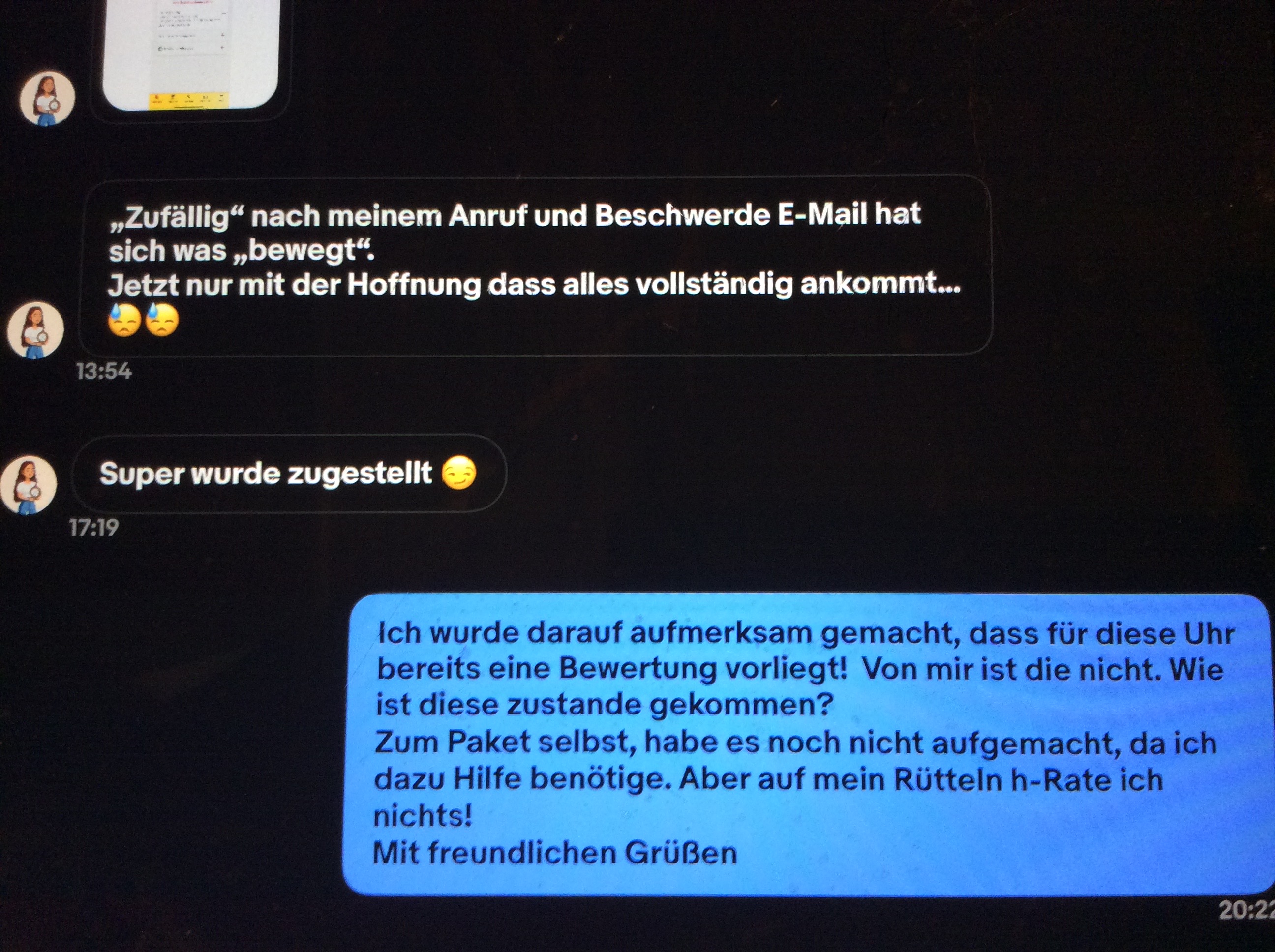 14 Dez. 2023 02:34 - 14 Dez. 2023 02:59Siehe meine Erklärung dazu #19376Nein, das ist sie nicht! Du chattest doch mit "die_frau_mit_uhren" und DAS war ihr Angebot:Genau, das ist sie!Seltene und interessante Uhr