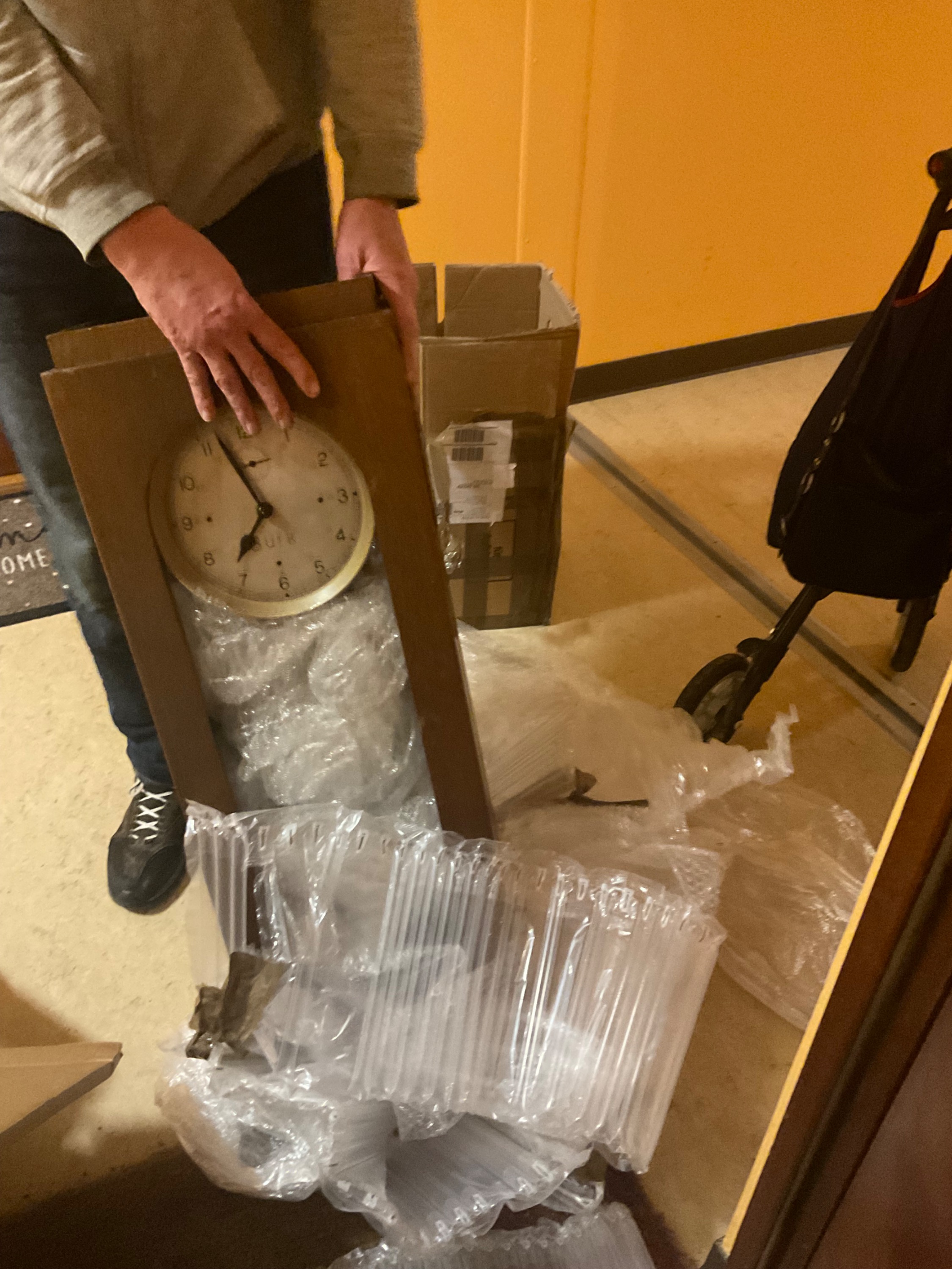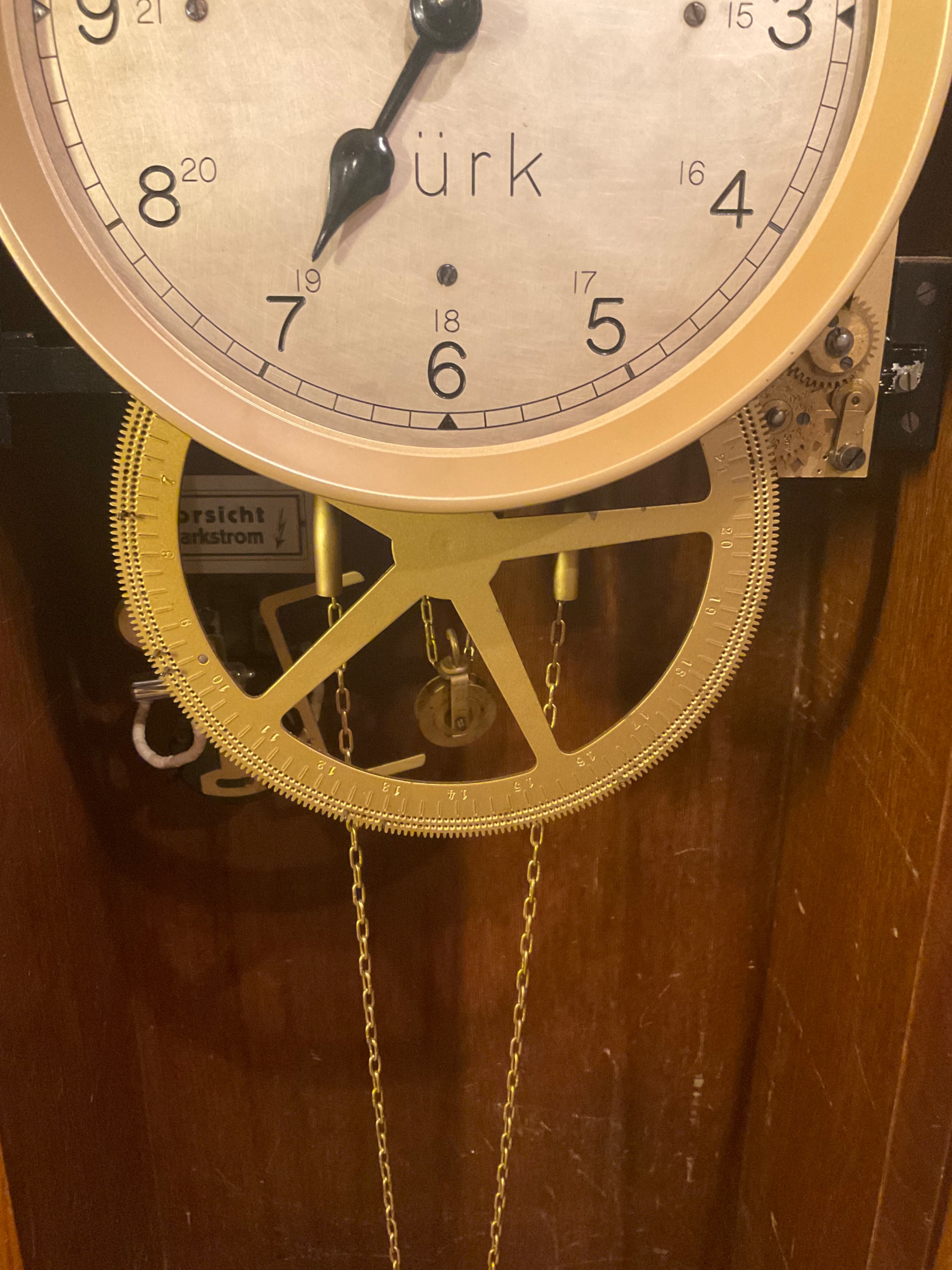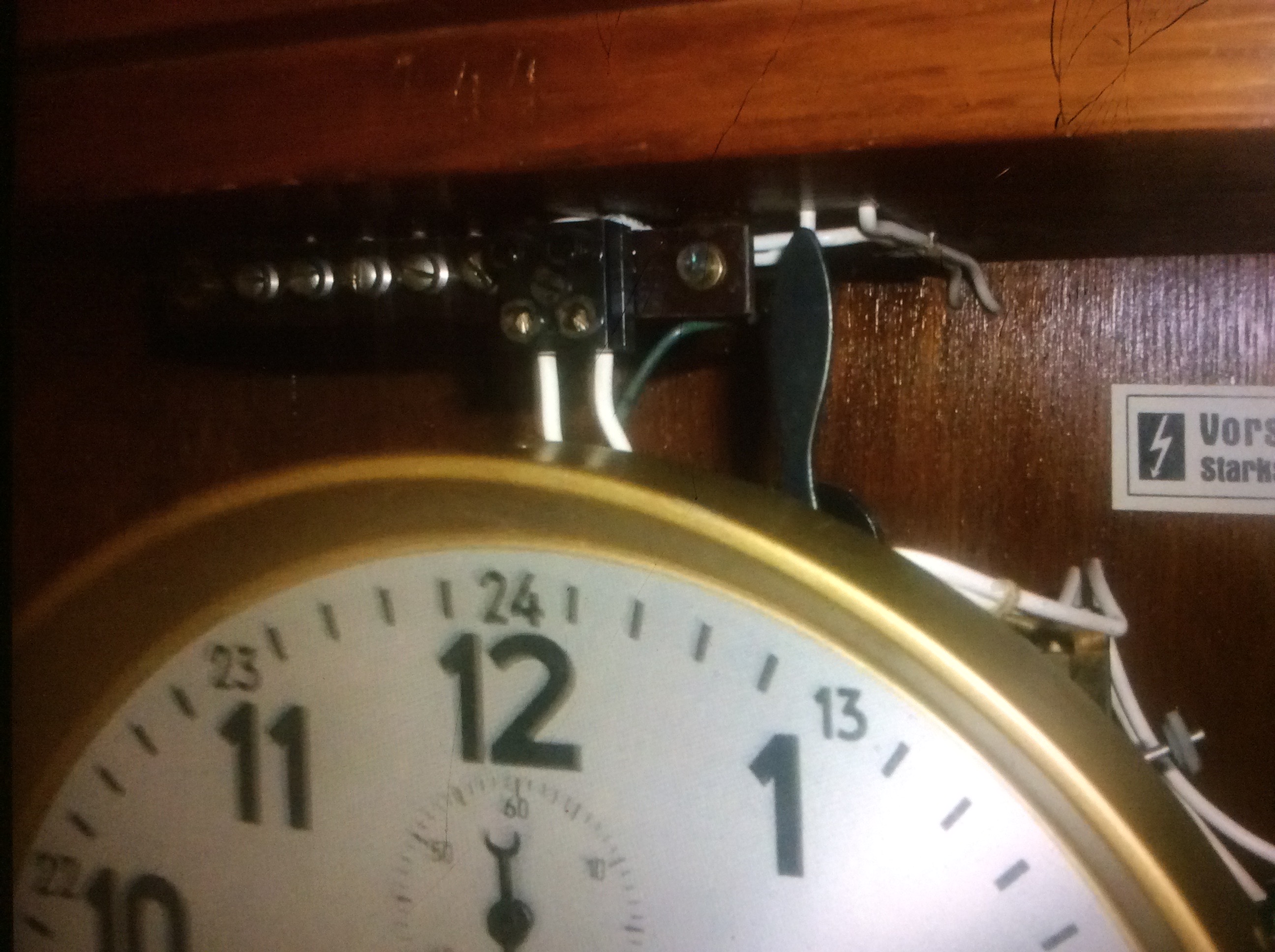 Hier die Situation mit meiner Uhr im Bild festgehalten. (Schrankwand mit daran befestigter Uhr)