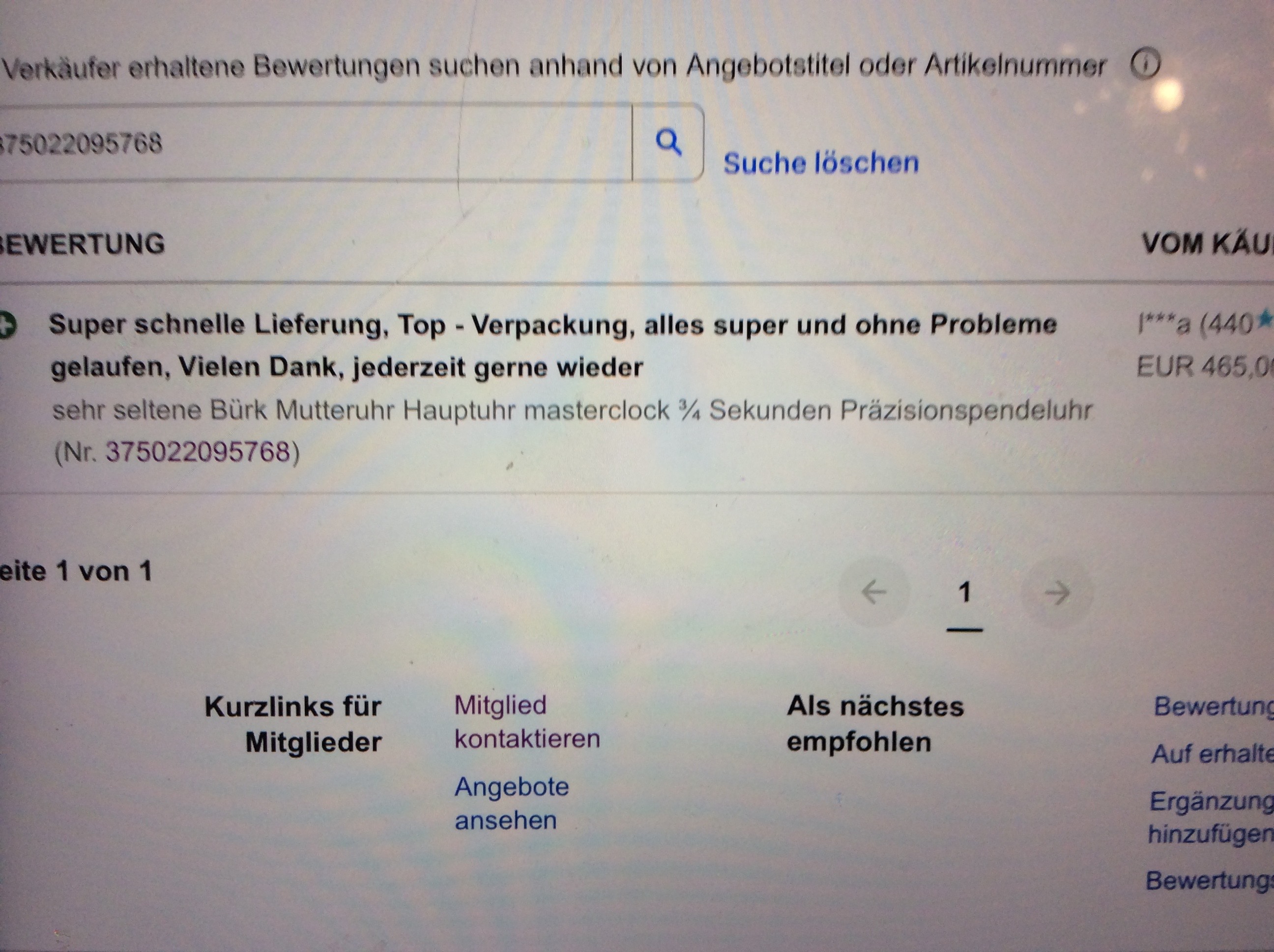 Die abgegebene Bewertung, die ich erst jetzt gesehen habe ist nicht von mir. Da ich trotz meiner vermeintlichen Idiotie immer erst eine Bewertung nach Erhalt des Gegenstandes abgebe! Dazu werde ich die Verkäuferin umgehendst kontaktieren.