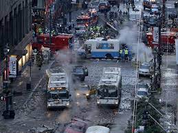 Hier Bilder von Explosionen von Heißdampfleitunge. In New York