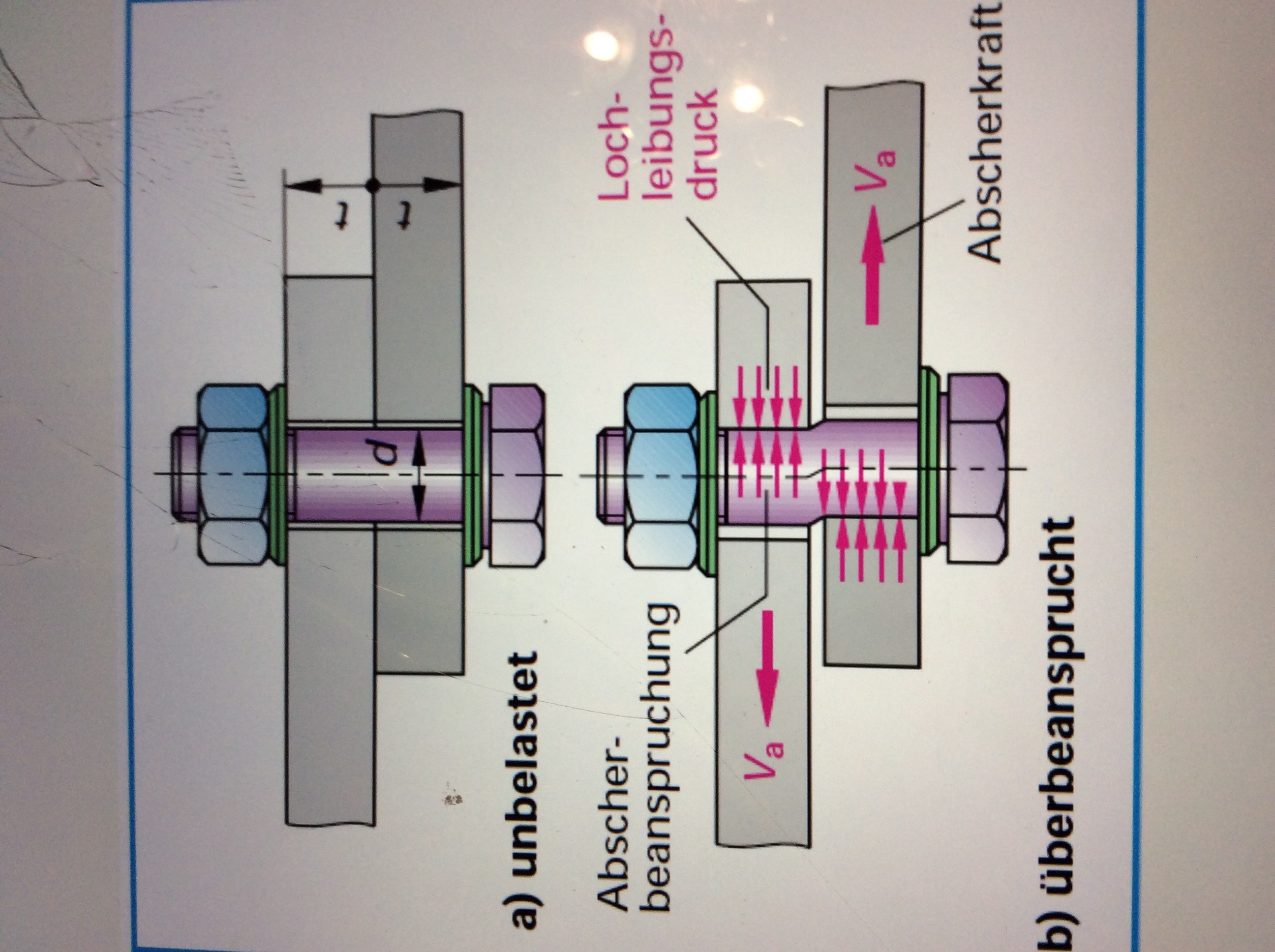Hier zum besseren Verständnis der Scherkräfte mit denen wir im Alltag laufend konfrontiert werden, eine Skizze in der dies zum Ausdruck kommt (in unseren Beispiel mit der Uhr um 90 Grad gedreht) Diese Situation haben wir bei jeden Dübel in der Wand, indem eine Schraube befestigt ist!