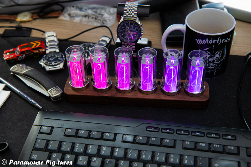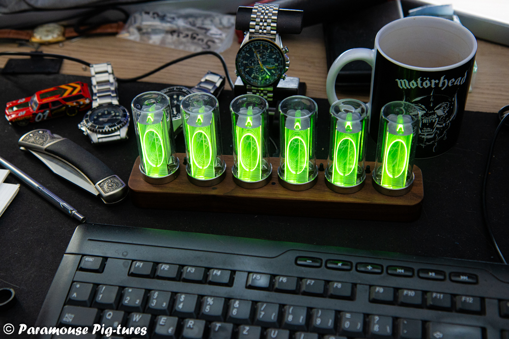 16 Jan. 2024 12:29 - 16 Jan. 2024 21:29Jedenfalls bin ich von meiner ursprünglichen Absicht, eine Nixie-Uhr zu kaufen, abgekommen. Statt dessen habe ich eine hübsche Uhr gefunden, die zum einen den Röhren-Look sehr gut imitiert und außerdem noch einige Features im Gepäck hat.