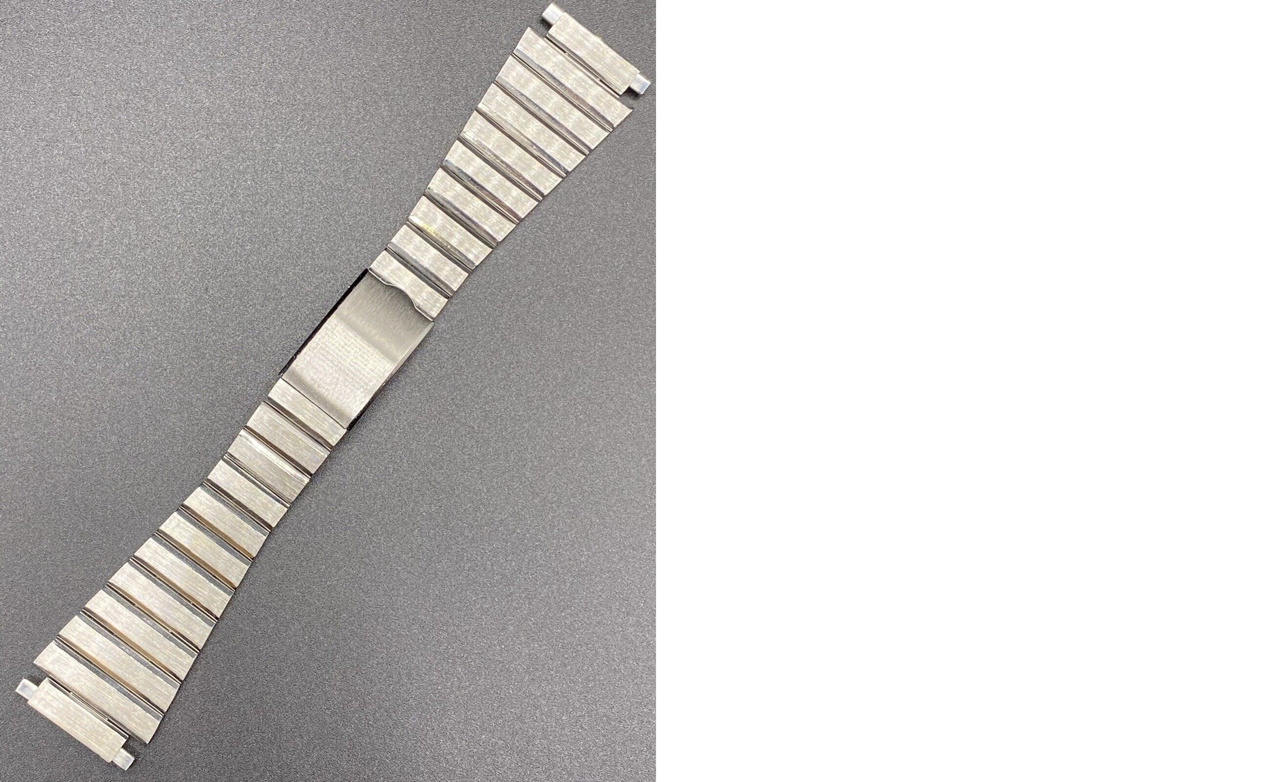 26 Feb. 2024 17:42 - 26 Feb. 2024 17:49Was ich weiter oben meinte, ist ein Band, bei dem der Bandanschluss 18 mm beträgt, aber das erste, auf den Anschluss folgende Glied ist abrupt wesentlich breiter, z.B. 22 mm, von dort verjüngt sich das Band in Richtung Schliesse. Solche Bänder gab es häufig in den 70ern und anfangs der 80er, aber heute sind sie selten zu bekommen.