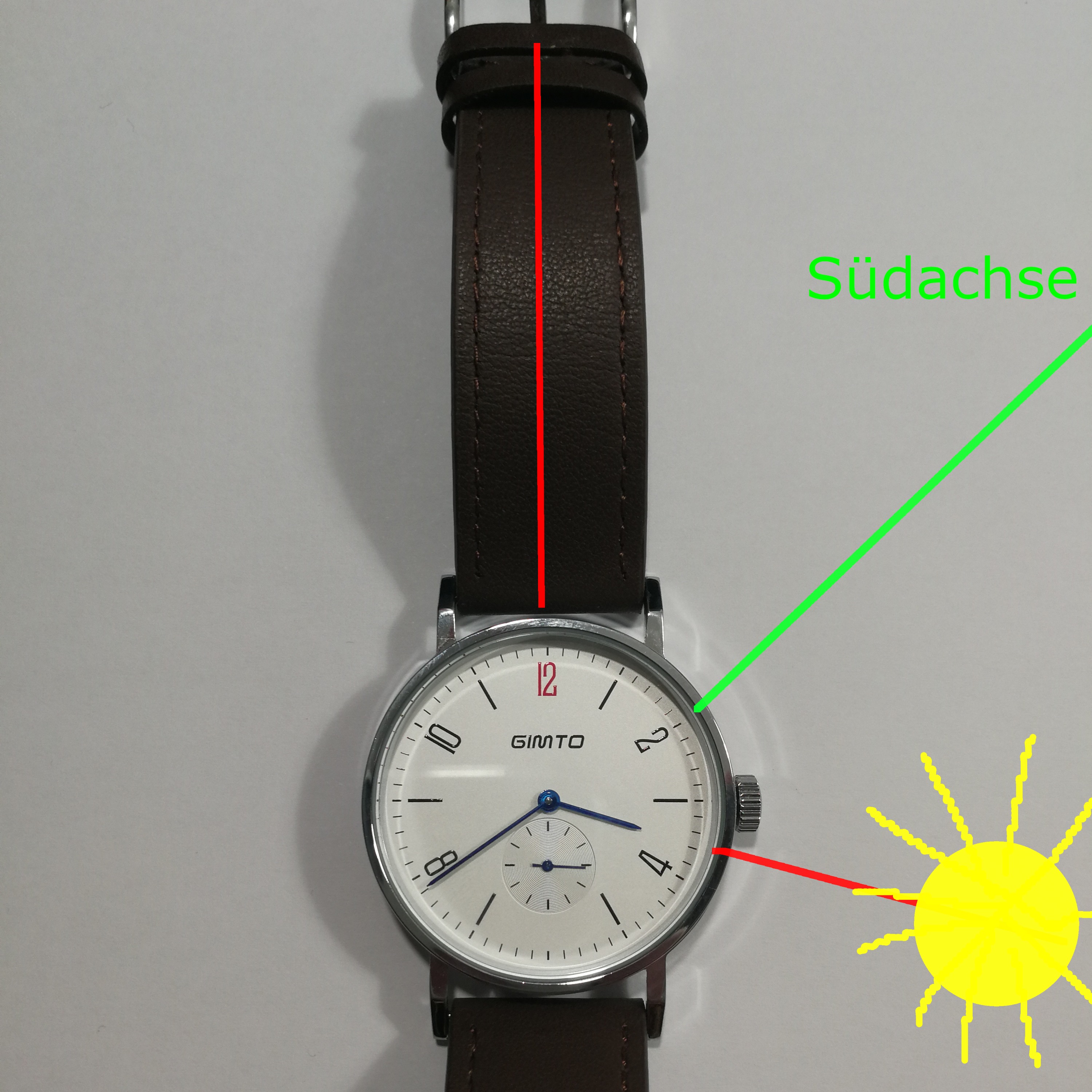 Grobe Orientierung (die aber relativ genau ist) per Uhr!