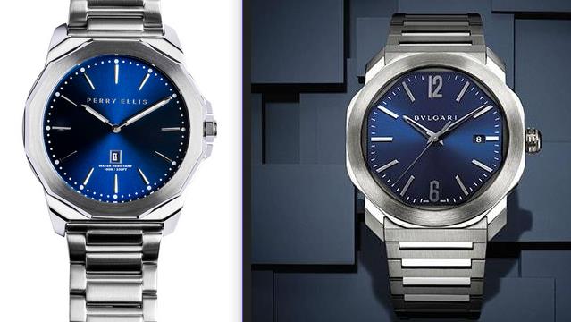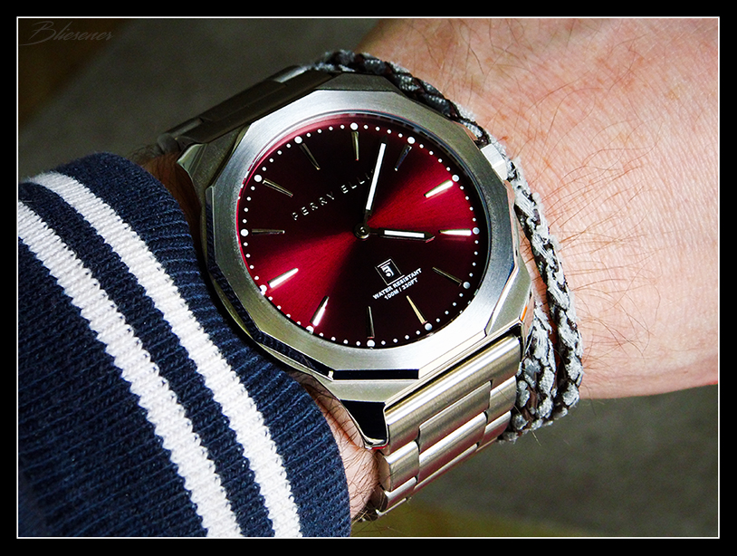 Die Perry Ellis ist wunderschön. Aber mehr als einen Hauch Genta würde ich ihr aber nicht zugestehen. Das ist auch überhaupt nicht abwertend gemeint. Die Form der Lünette geht natürlich in Richtung Royal Oak, aber es fehlt das integrierte Armband